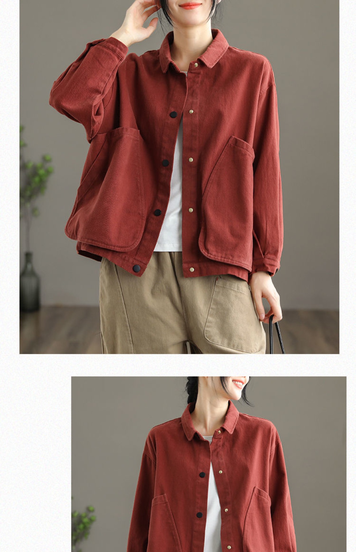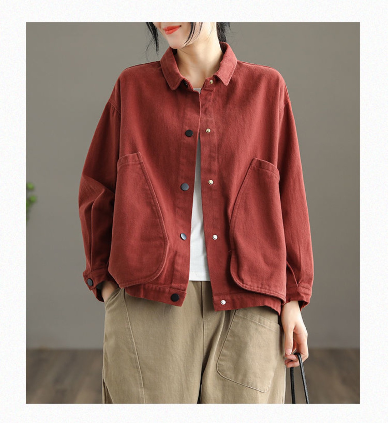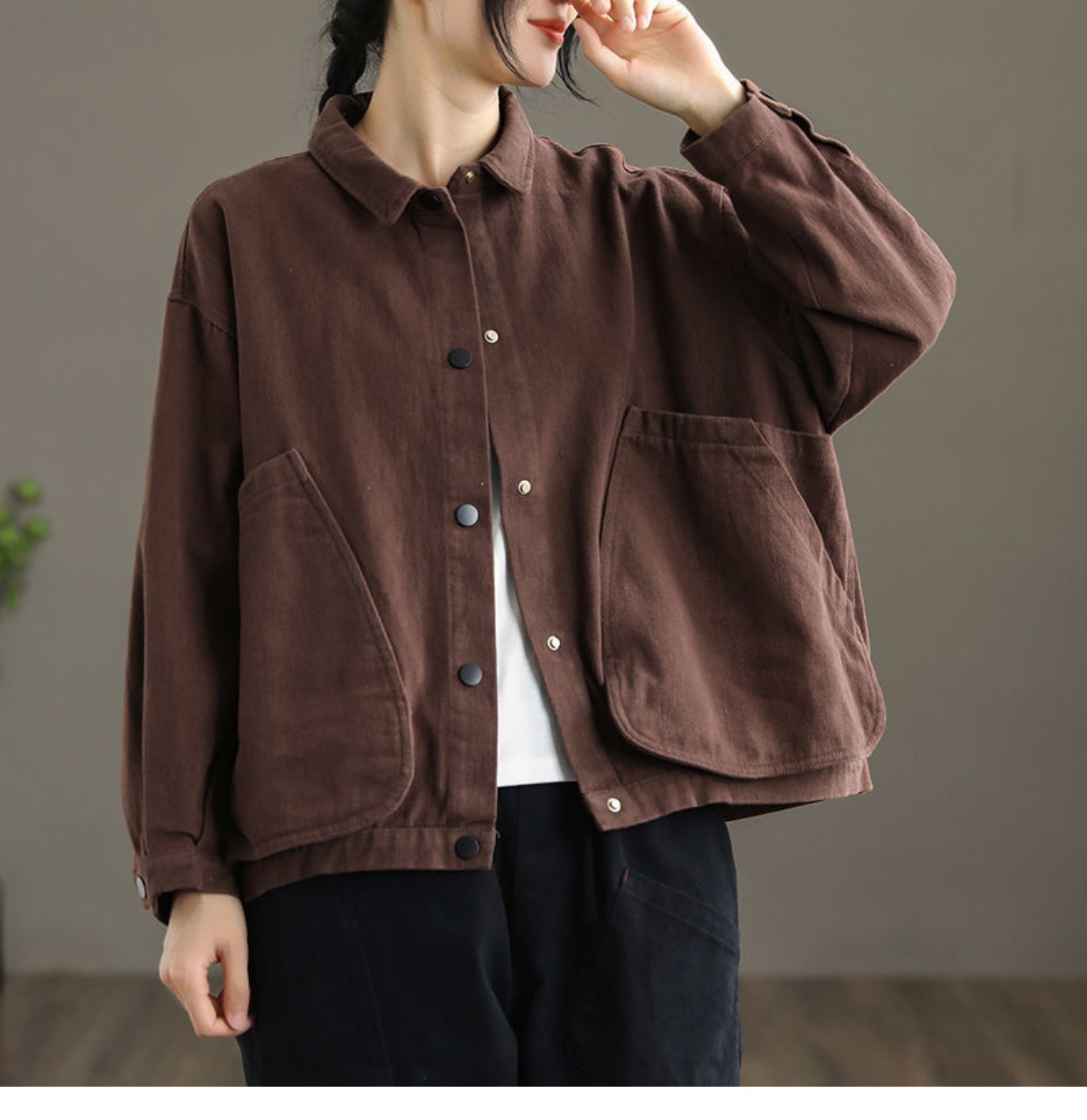 2022 신상품 짧은 재킷 큰 포켓 면 재킷 여자의 한국 스타일 느슨한 랩 긴 소매 캐주얼 재킷 탑스토어 가기