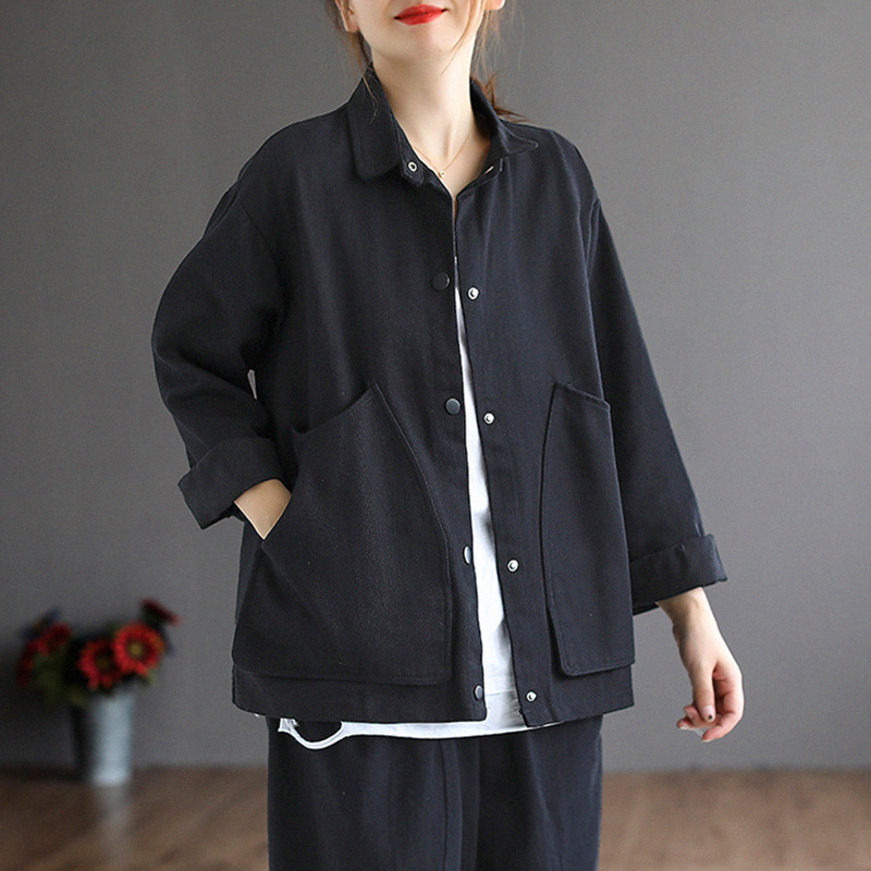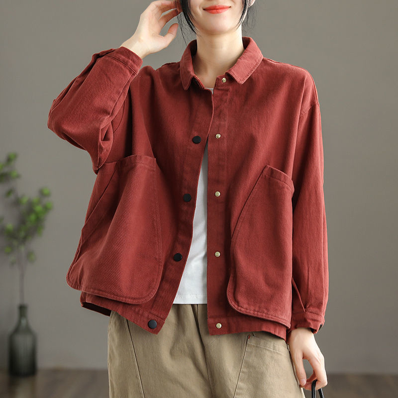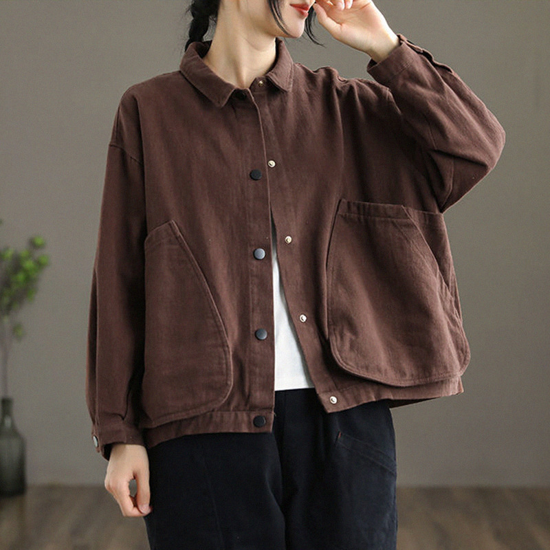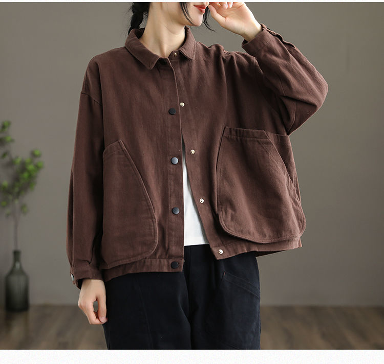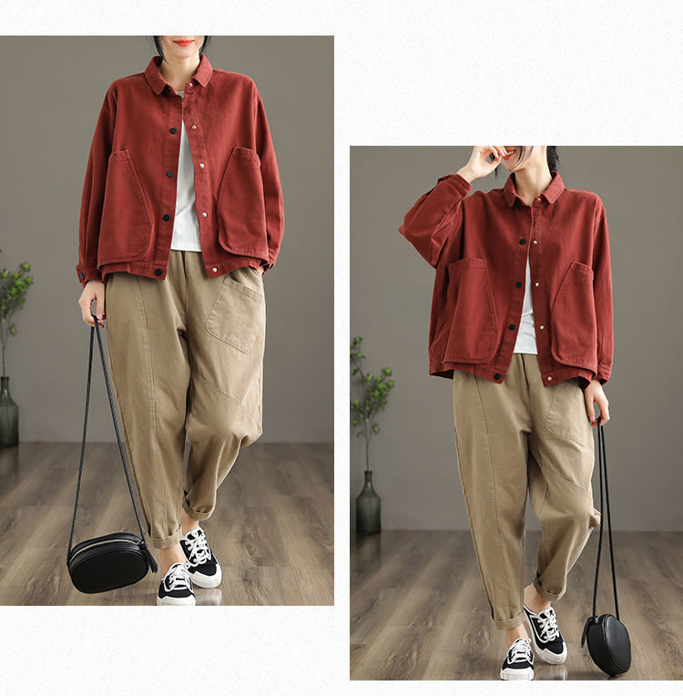 2022 신상품 짧은 재킷 큰 포켓 면 재킷 여자의 한국 스타일 느슨한 랩 긴 소매 캐주얼 재킷 탑