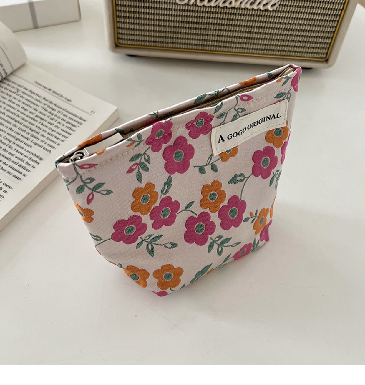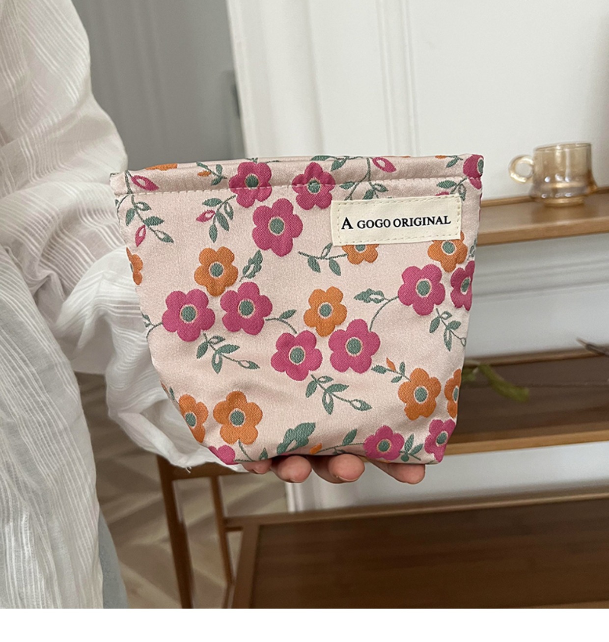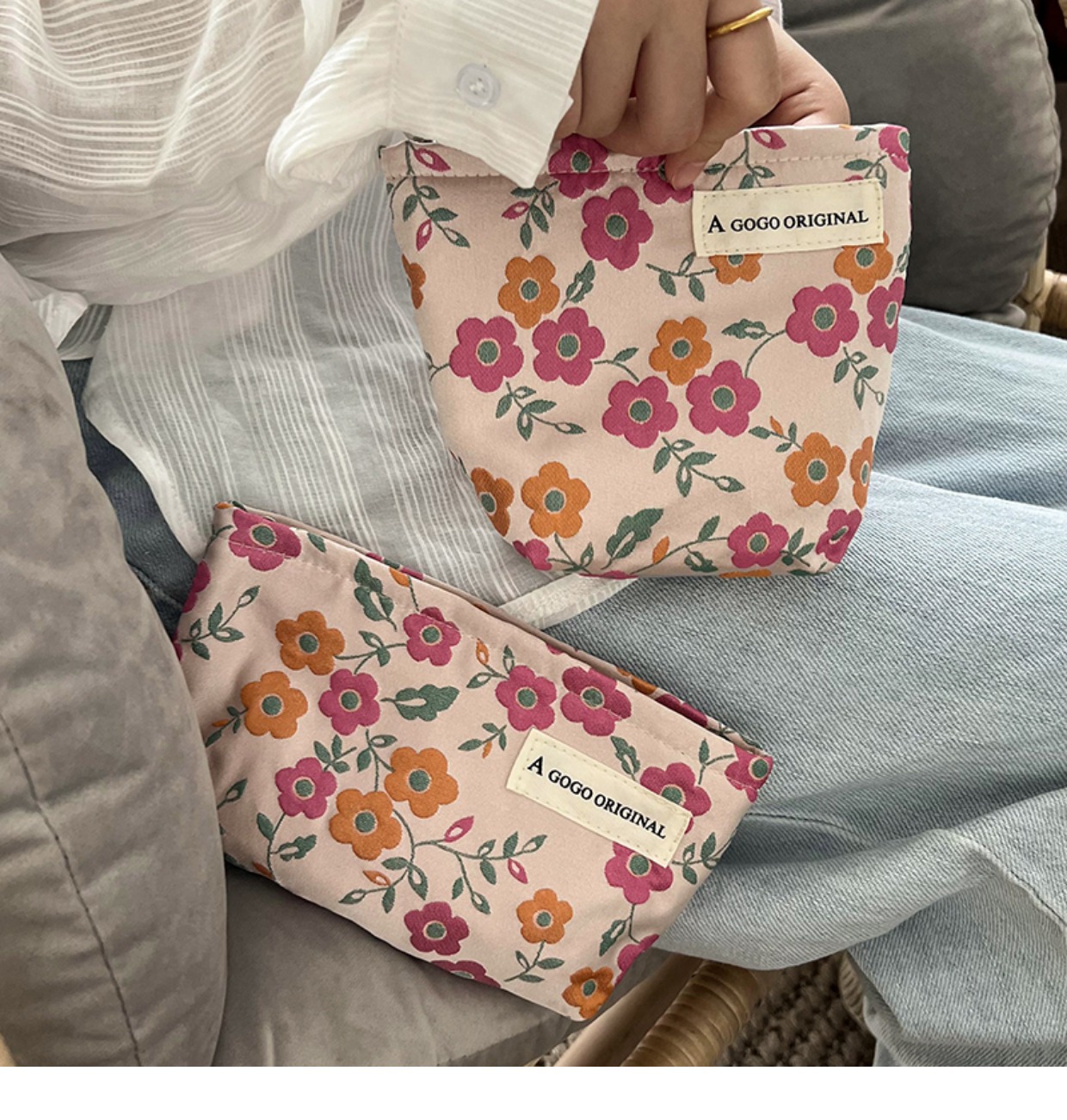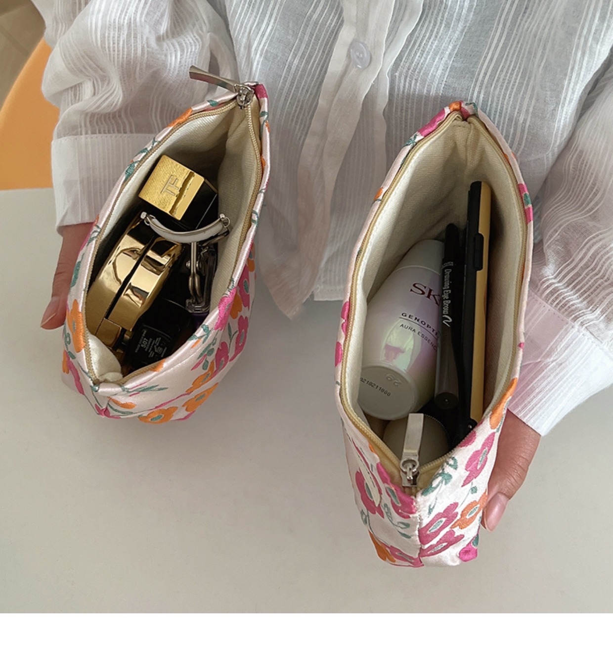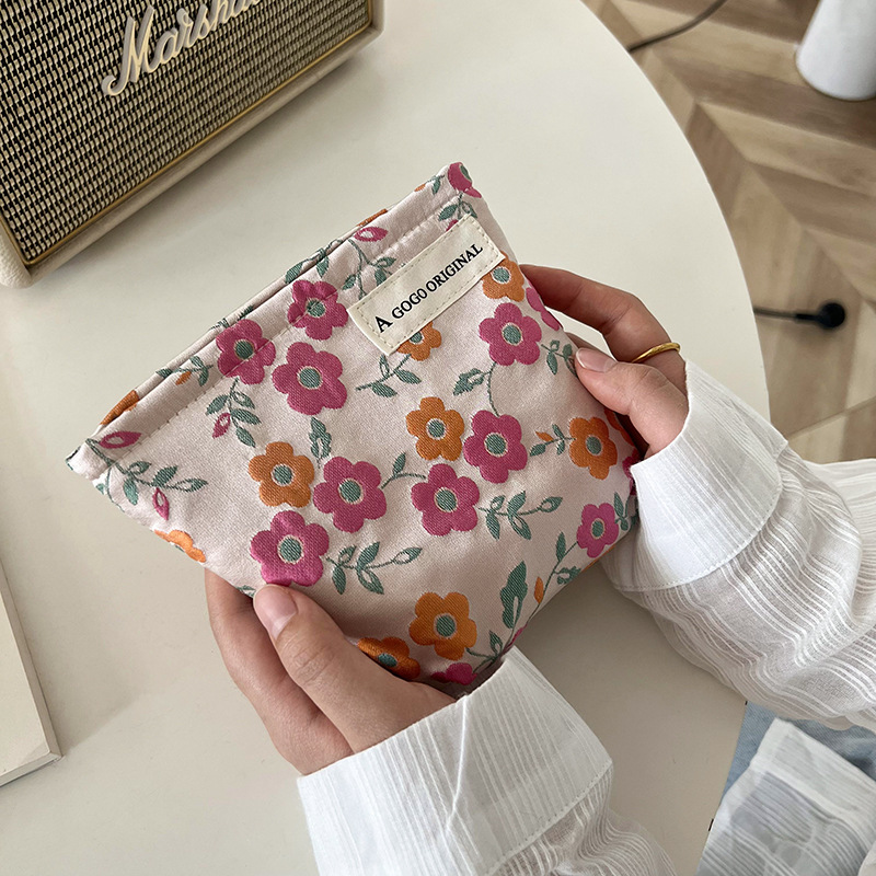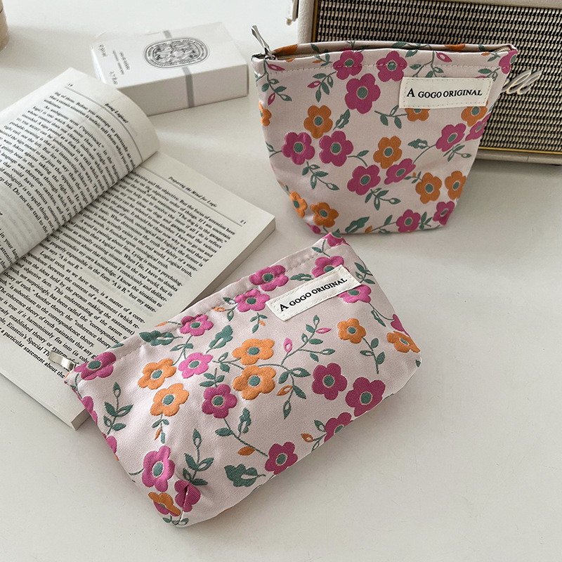 파우더 오렌지 플라워 프린팅 화장품 가방 마스카라 페이셜 클렌저 긴 보관 휴대용 메이크업 재고 가방스토어 가기