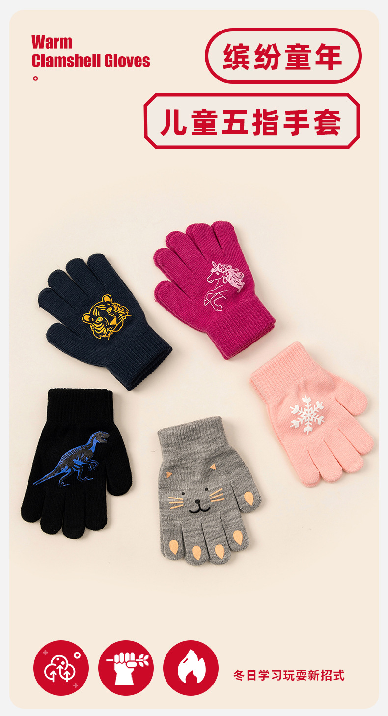 어린이 장갑 할로윈 소녀 겨울 따뜻하고 방한 손가락 만화 귀여운 남자 얇은 니트 전체 손가락 보호