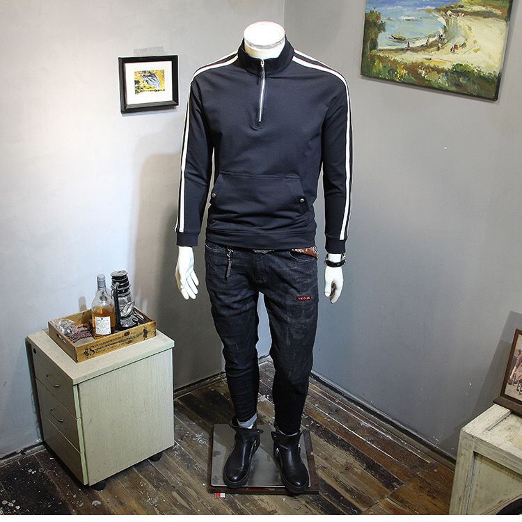 세로 칼라 스웨터 남자의 가을 새로운 한국 스타일 슬림 핏 재킷 베이스 셔츠 잘 생긴 십대 풀오버 탑 트렌디 남성스토어 가기