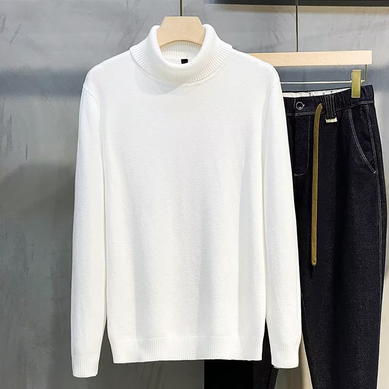 가을과 겨울 새로운 미드 칼라 이너 착용 한국 유행 하프 터틀넥 스웨터 남성용 단색 스웨터 기본 스웨터 스웨터