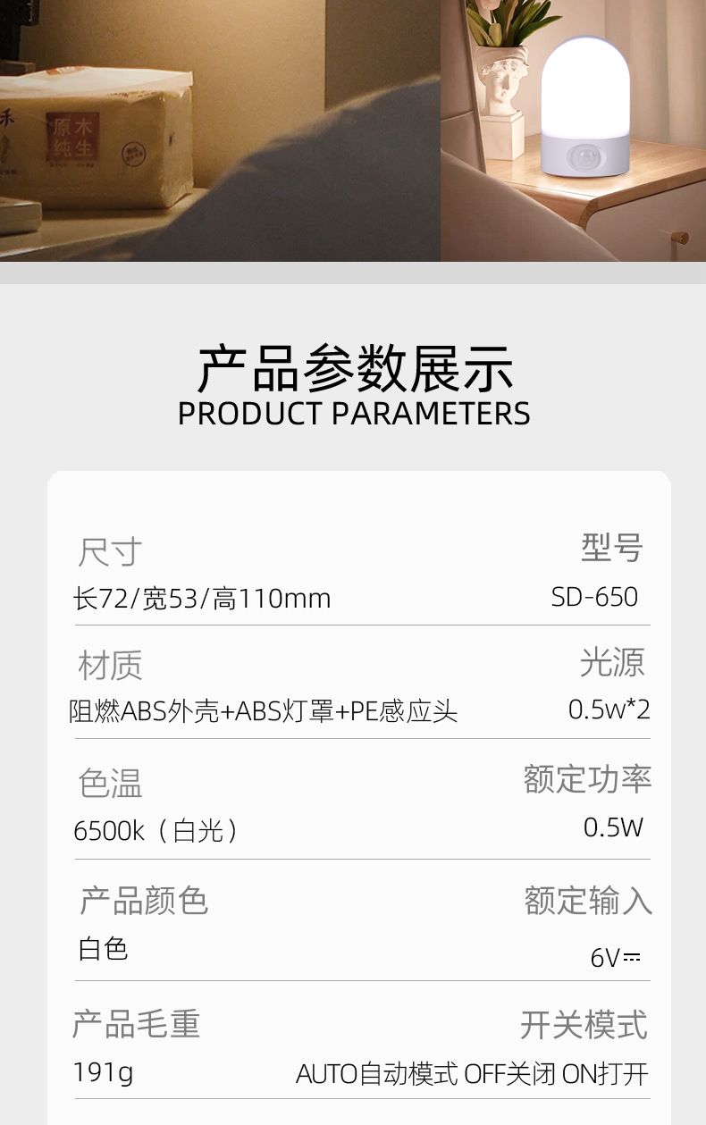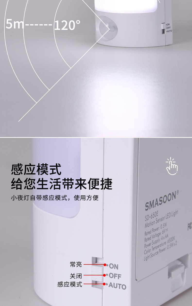 • 【영문 수출 버전】 독점 디자인 스마트 센서등 배터리형 | 백색광