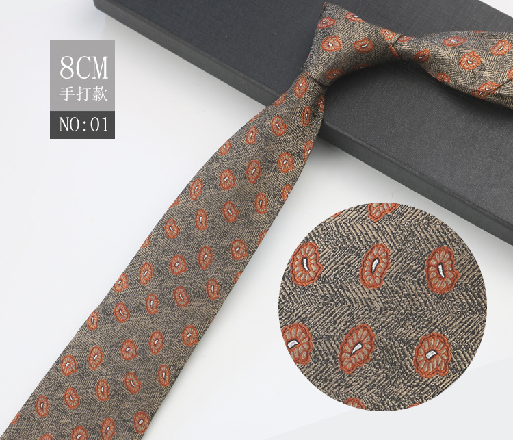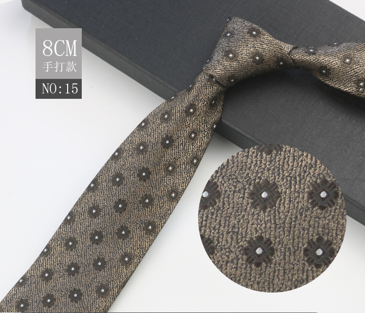 비즈니스 남성 넥타이 전문 공식 착용 패턴 다크 브라운 세트 신사 회의 고밀도 8cm 손 넥타이스토어 가기