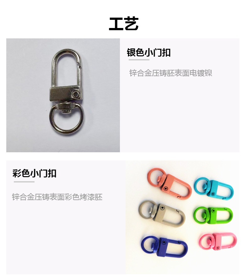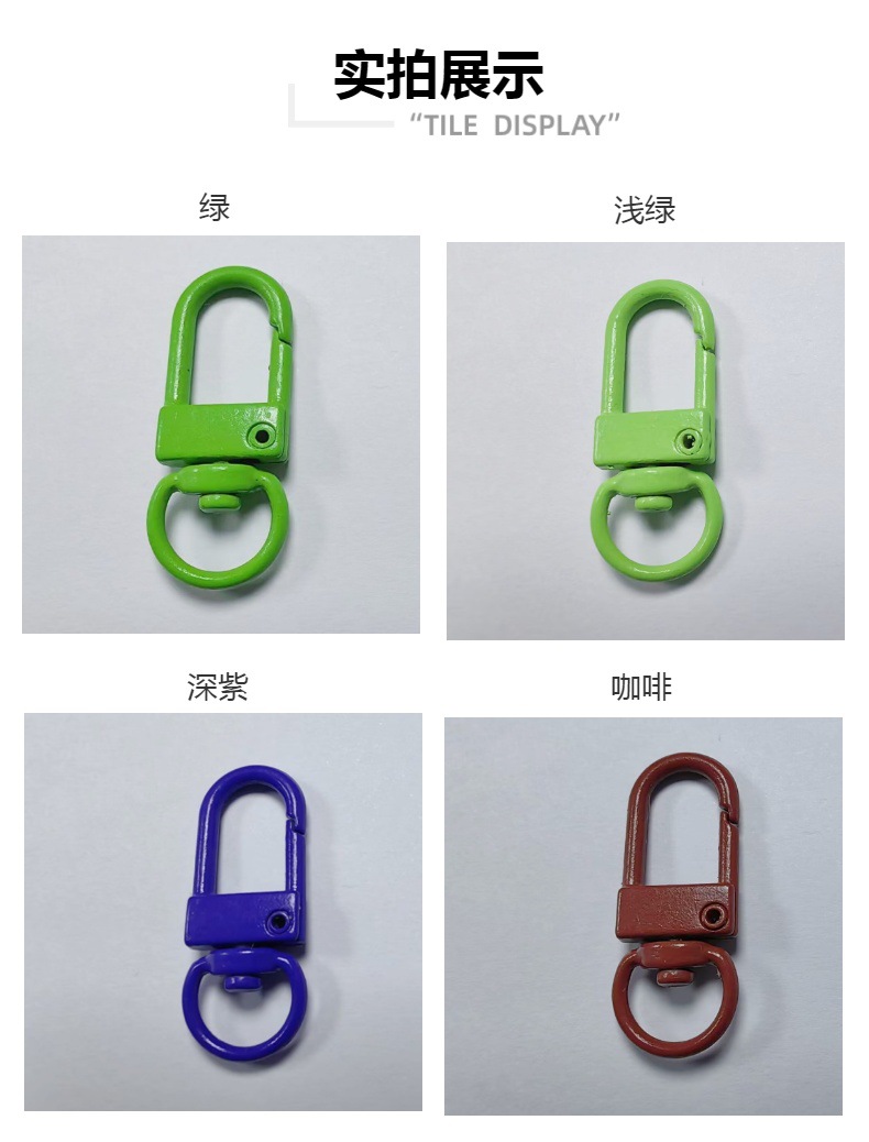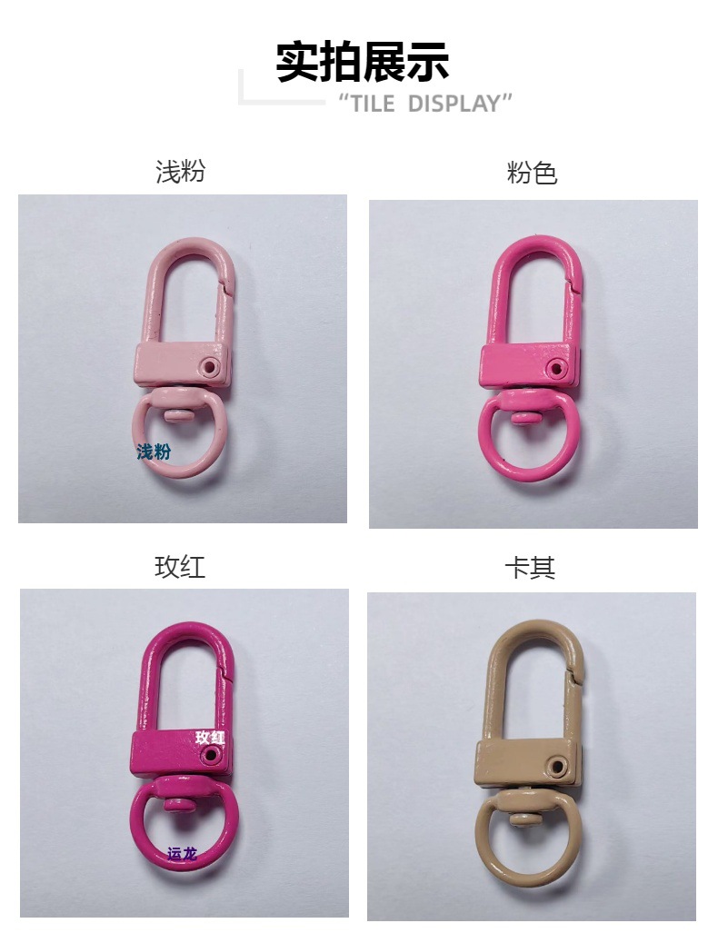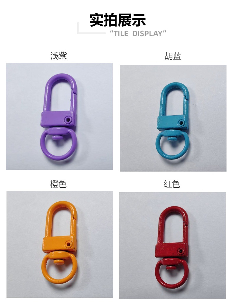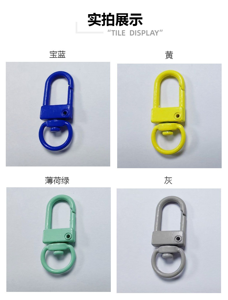 全新推出的烤漆彩色旋转门扣,以优质锌合金材料精心打造,造型可爱,轻便耐用,是完美的箱包配件。无论是作为钥匙圈、挂扣还是肩带钩扣,都能给您的日常生活增添一份活力和时尚感。适合各种送礼场合,如情人节、母亲节、教师节等,让您的心意更加独特。现在就来选购,给生活增添一抹亮色吧!可爱风锌合金钥匙扣,适合多种场合送礼,快来选购,让生活更精彩!