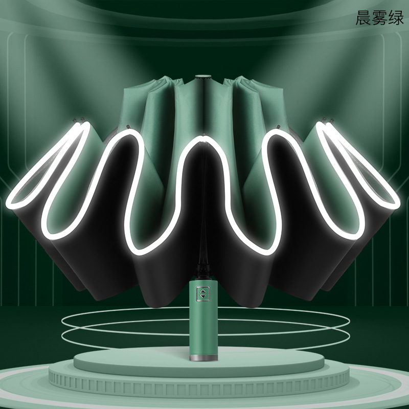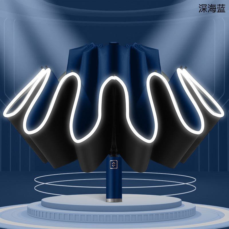 10 본 완전 자동 역 접이식 우산 야간 반사 3 중 접이식 우산 검정 고무 태양 커버 광고 우산 로고