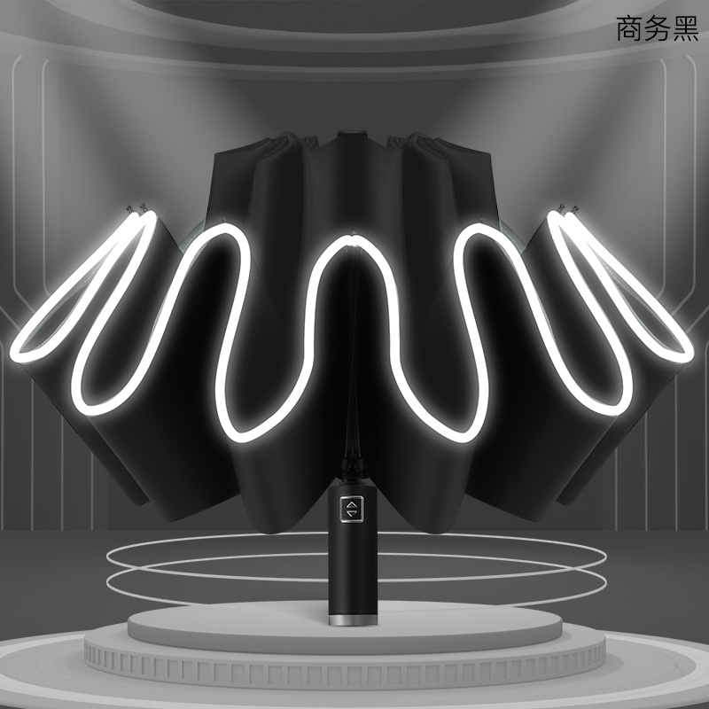 10 본 완전 자동 역 접이식 우산 야간 반사 3 중 접이식 우산 검정 고무 태양 커버 광고 우산 로고스토어 가기
