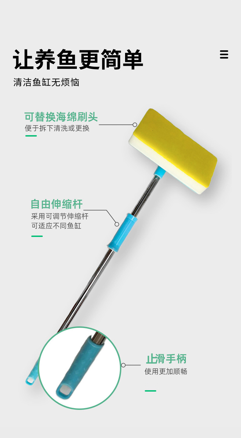 어항 스펀지 브러쉬, 물고기 탱크 청소용 도구, 긴 손잡이 브러쉬, 자석 브러쉬, 유리 탱크용 연장 브러쉬