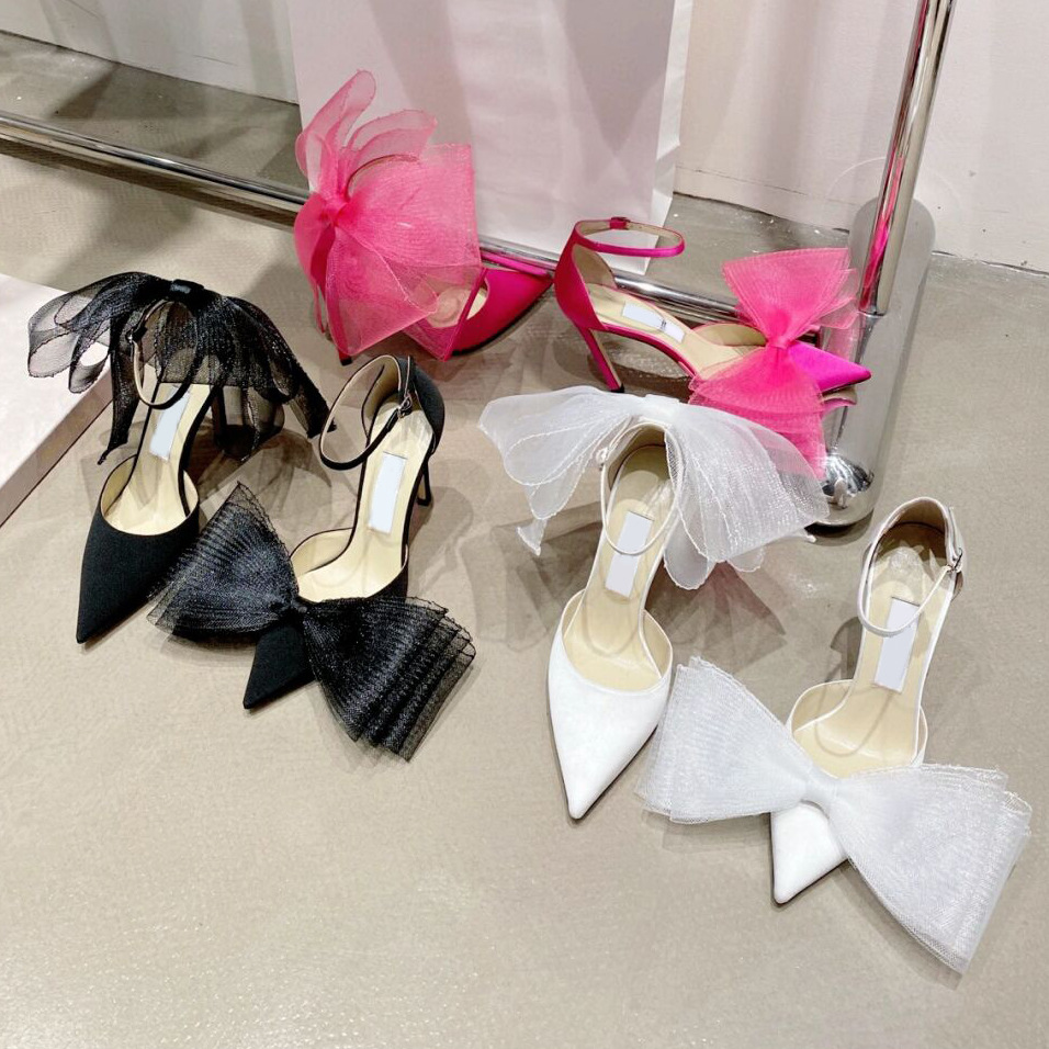 2026년 초봄 비대칭 리본 하이힐 여성용 뾰족코 얕은 굽 얇은 굽 섹시한 스트랩 샌들