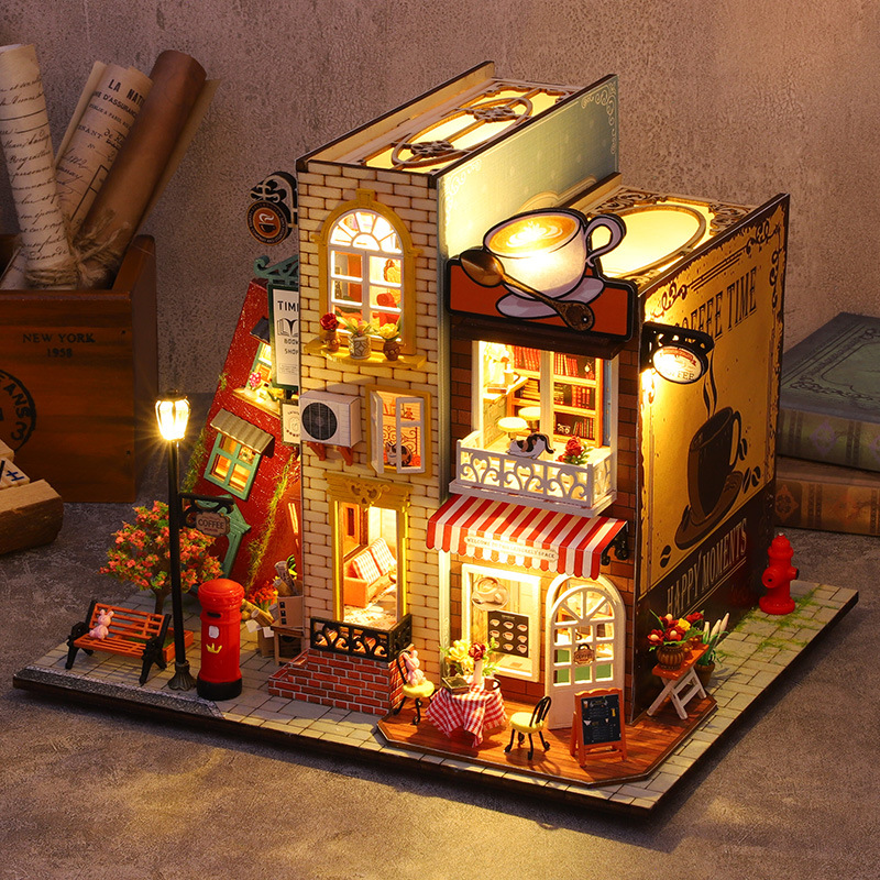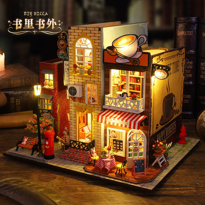 DIY 오두막 책 외부 책 3d 스테레오 조립 책 집 미니어처 건물 장난감 여성을위한 생일 선물스토어 가기