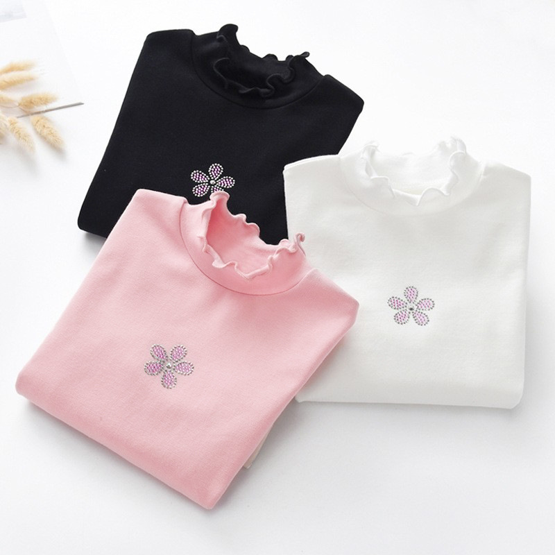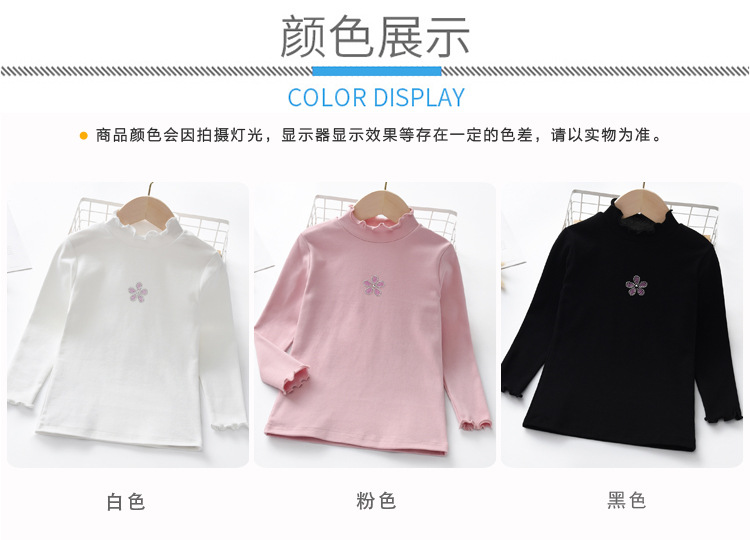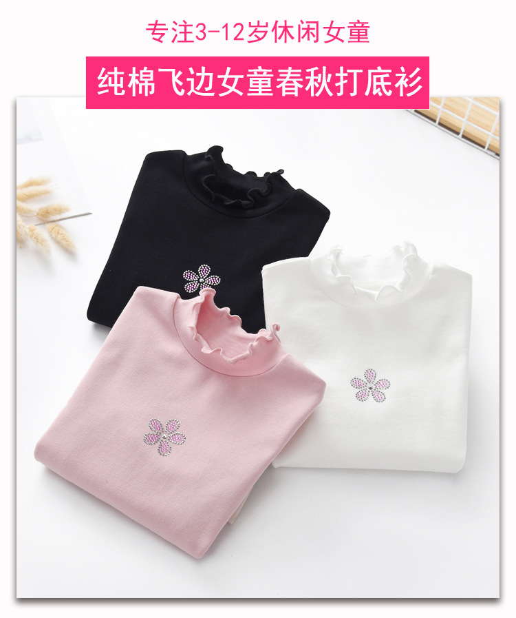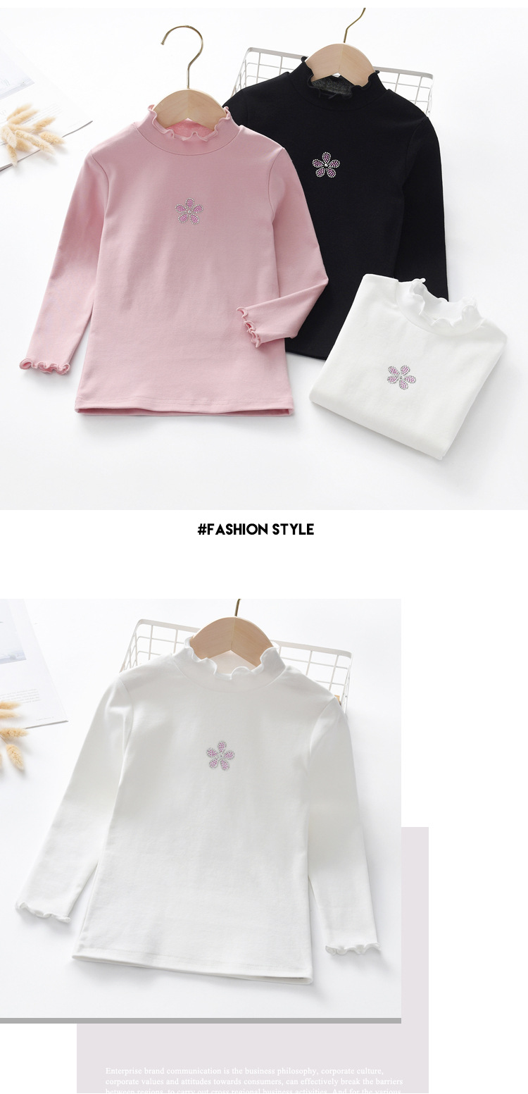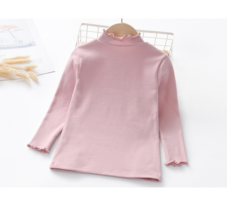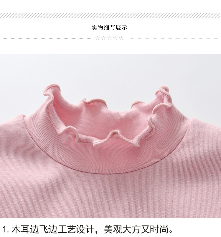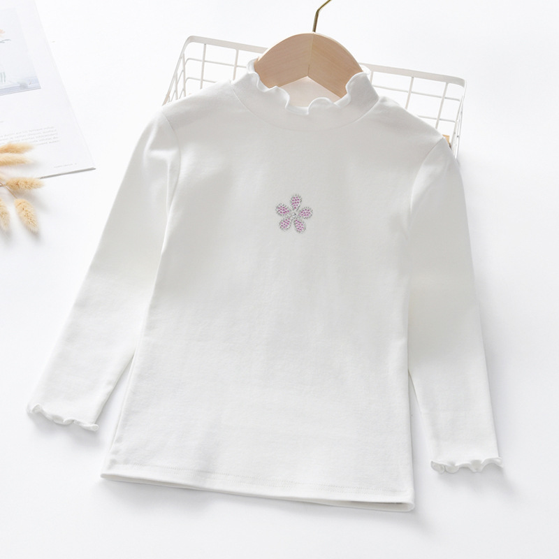 여자 바닥 셔츠 높은 칼라 아기 가을, 겨울 흰색 어린 소녀 곰팡이 가장자리 어린이 순수 코튼 긴팔 티셔츠스토어 가기