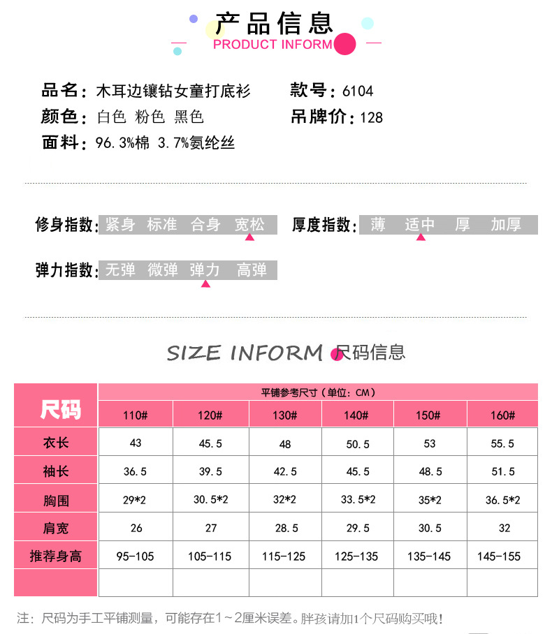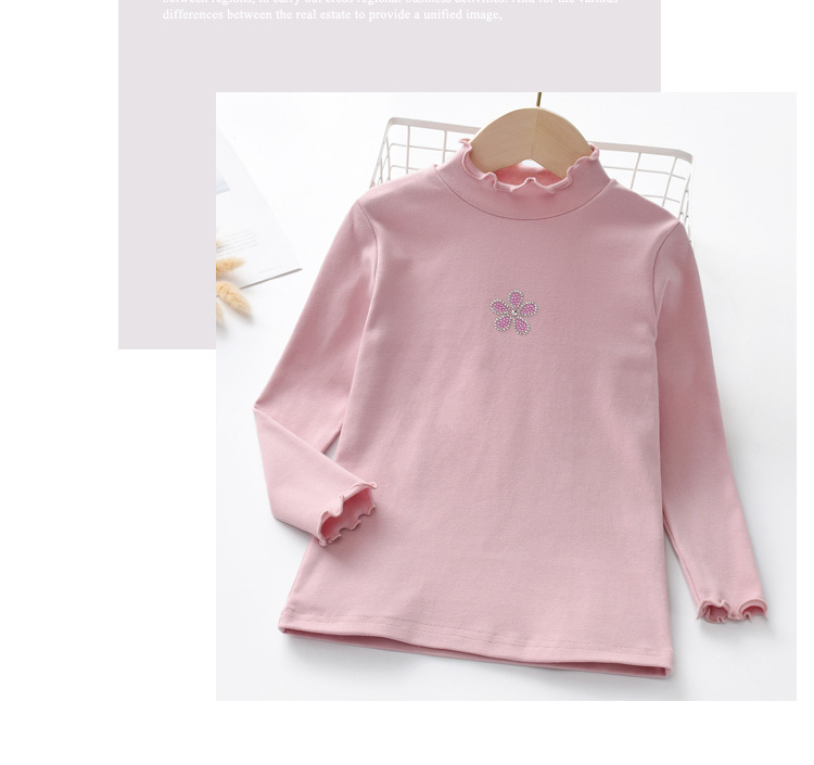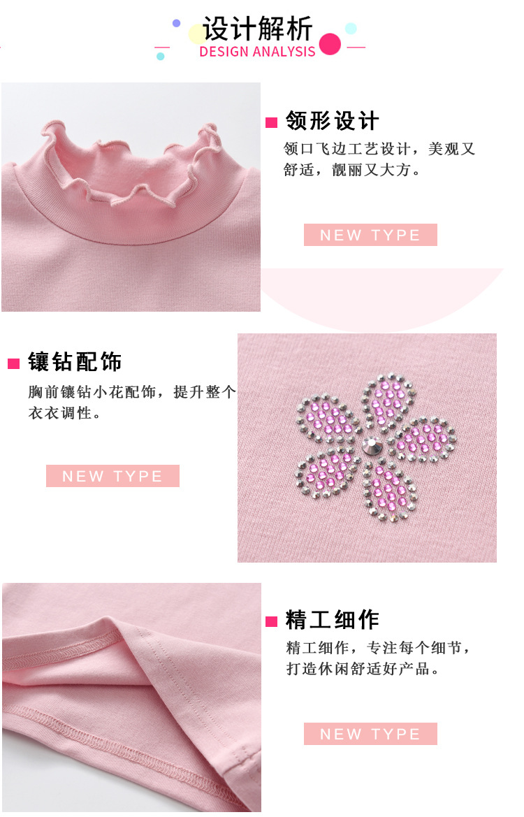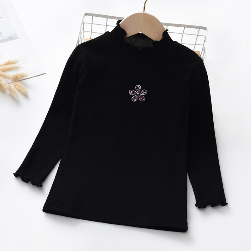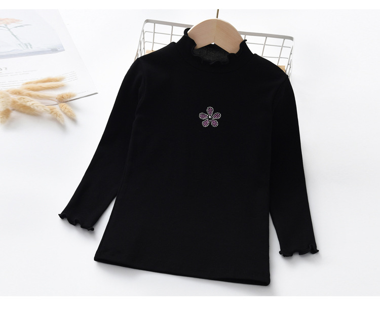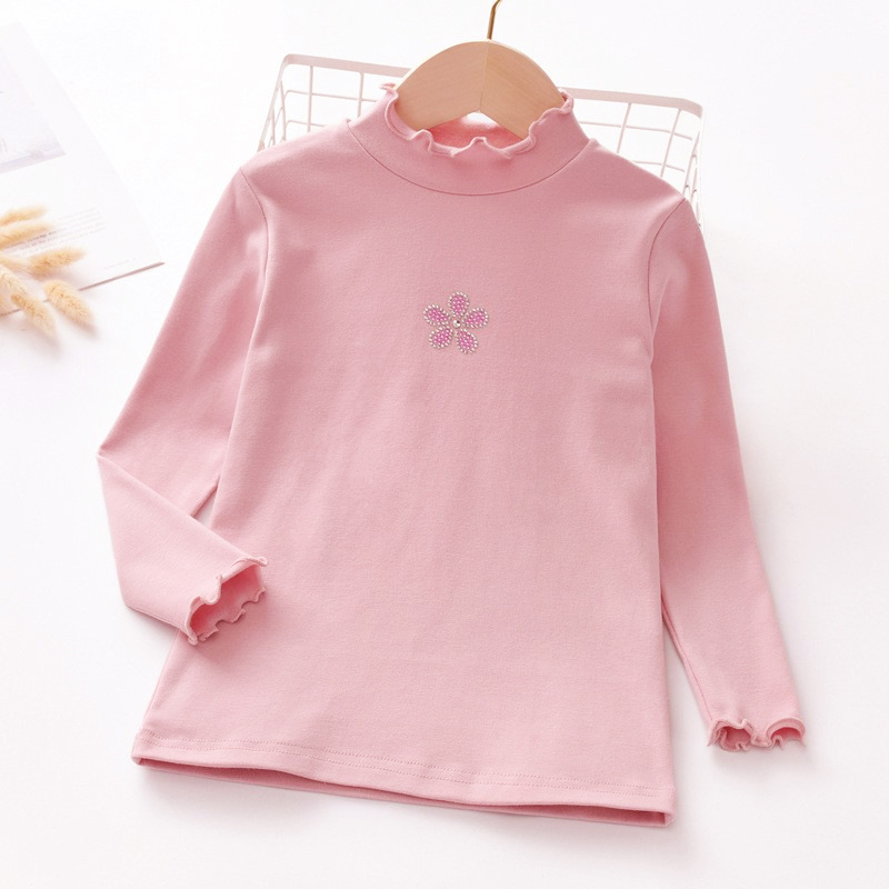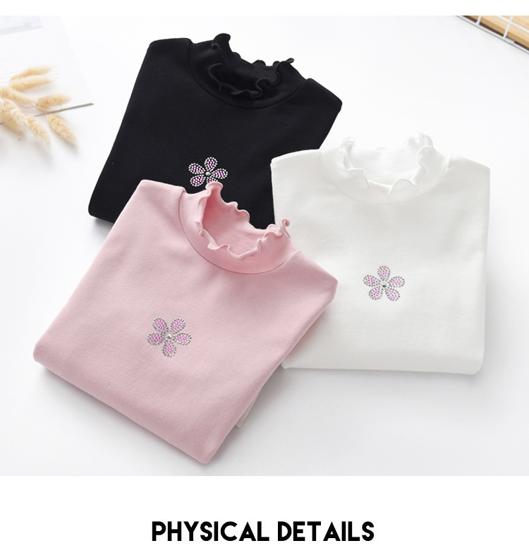 여자 바닥 셔츠 높은 칼라 아기 가을, 겨울 흰색 어린 소녀 곰팡이 가장자리 어린이 순수 코튼 긴팔 티셔츠스토어 가기