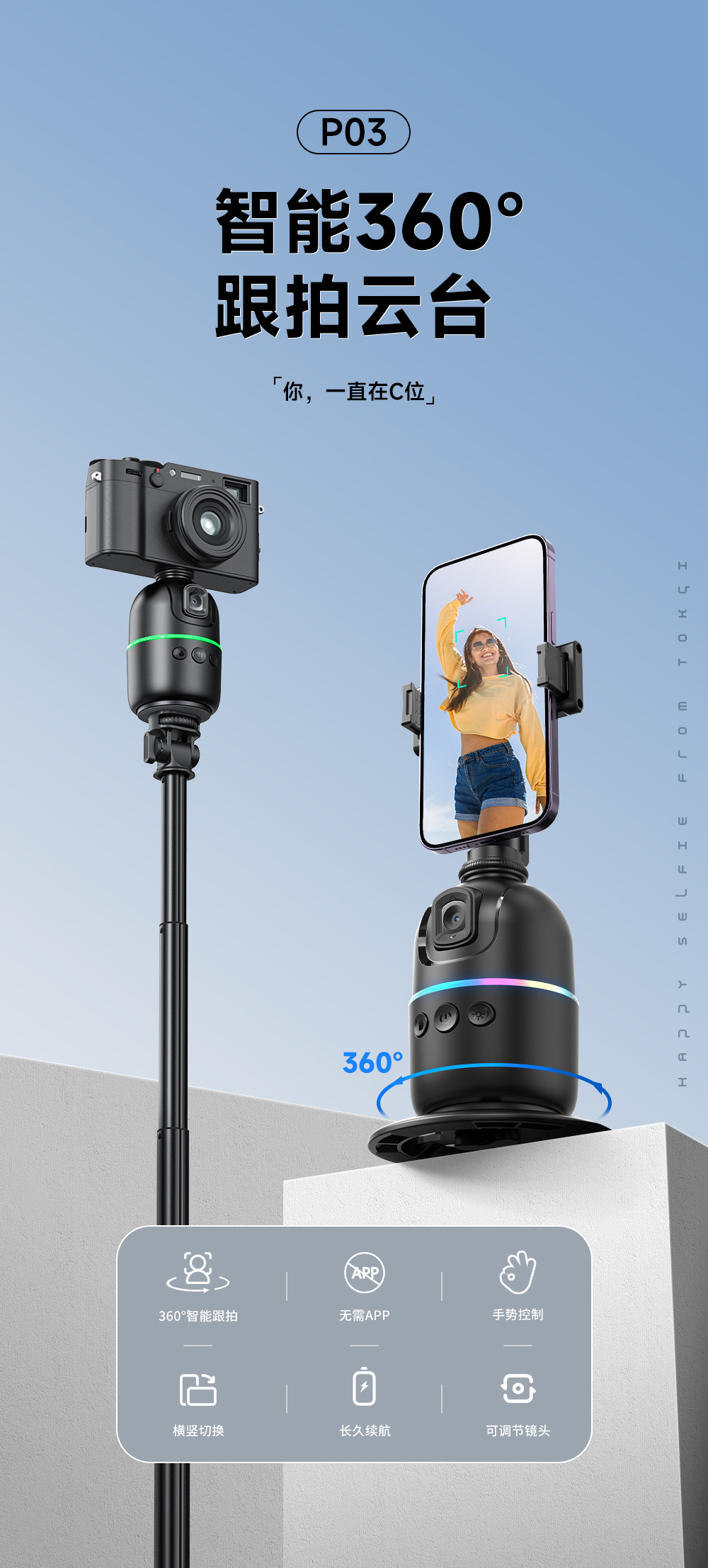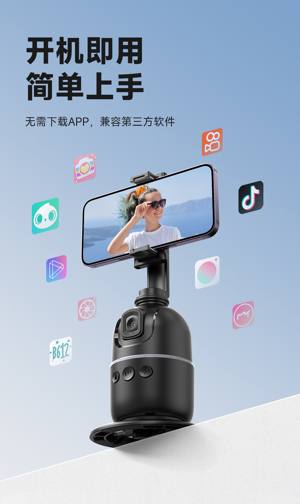 CYKE 데스크탑 라이브 스트리밍 휴대폰 거치대 삼각대 AI 얼굴 인식 팔로우 기능이 있는 짐벌, 게으른 사람들을 위한 안정 장치
