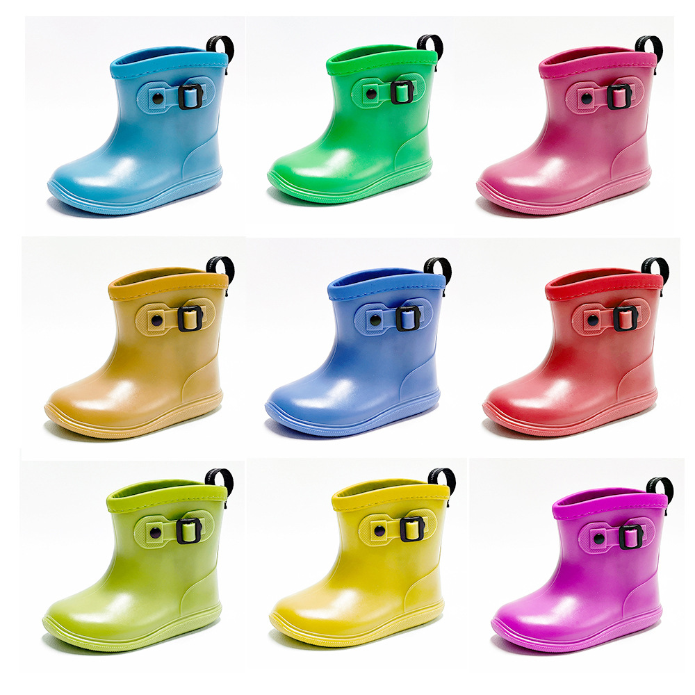 공장 대외 무역 OEM 솔리드 컬러 일본 및 한국 로우 배럴 에지 러그 사이드 버클 모든 매치 PVC 장화 장화 어린이스토어 가기