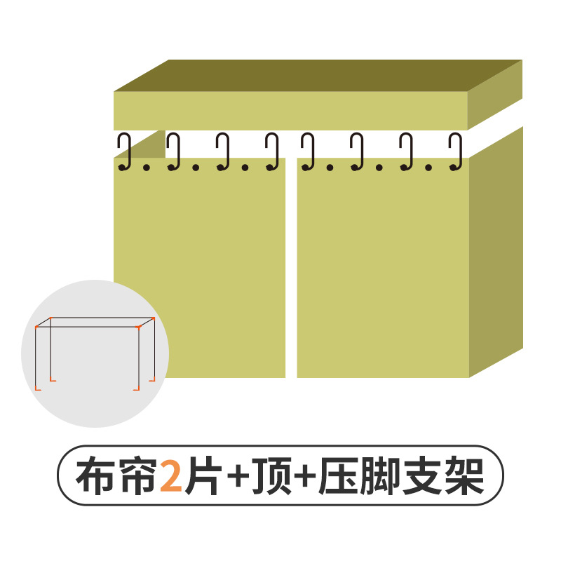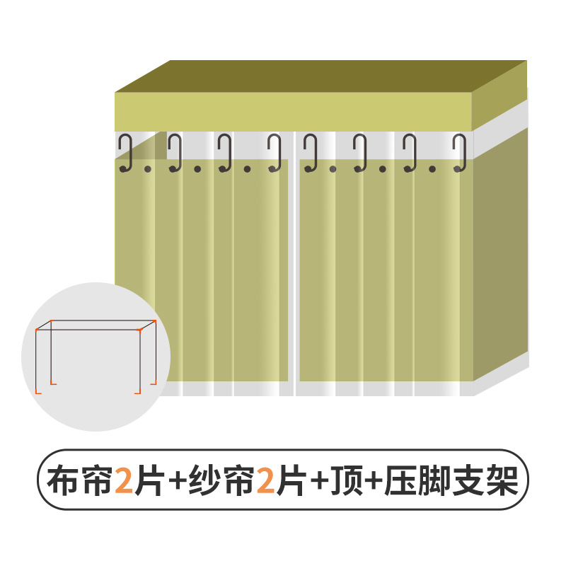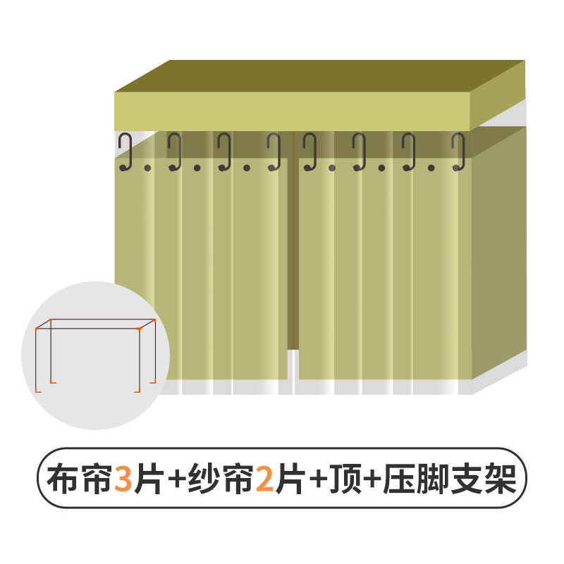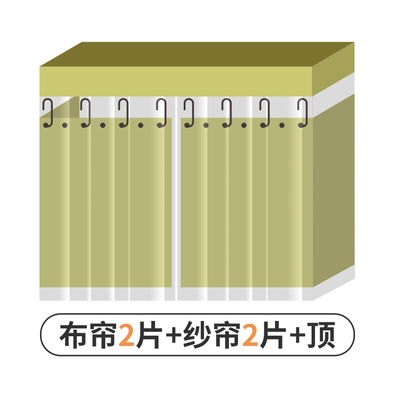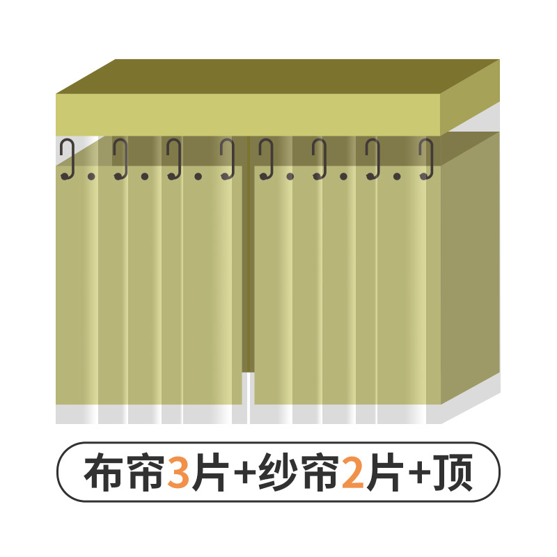 • [Coco Sheep * Green] 천 커튼 2 개 + [회색] 방진 상단 1 + 스트레치 발 텔레스코픽 브래킷