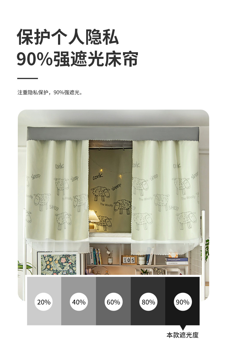 Coco Sheep 두꺼운 강한 차양 침대 커튼 학생 기숙사 간단한 상하 침대 대학 기숙사 침대에서 여성 물리학