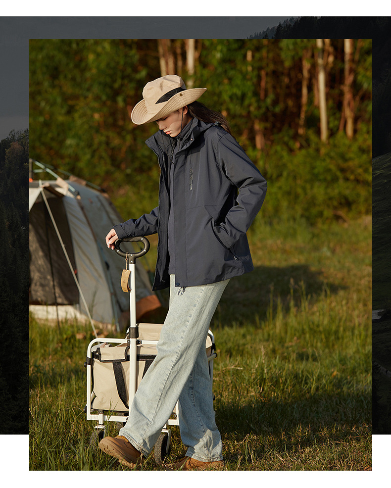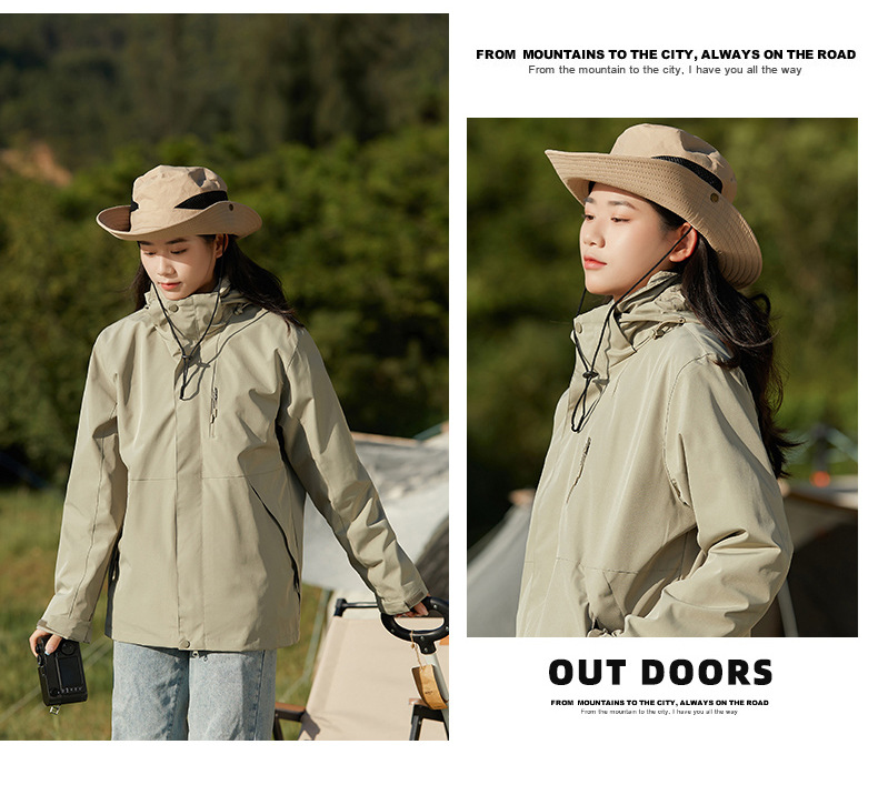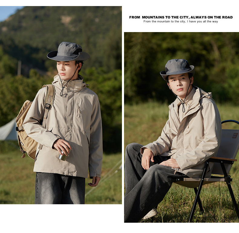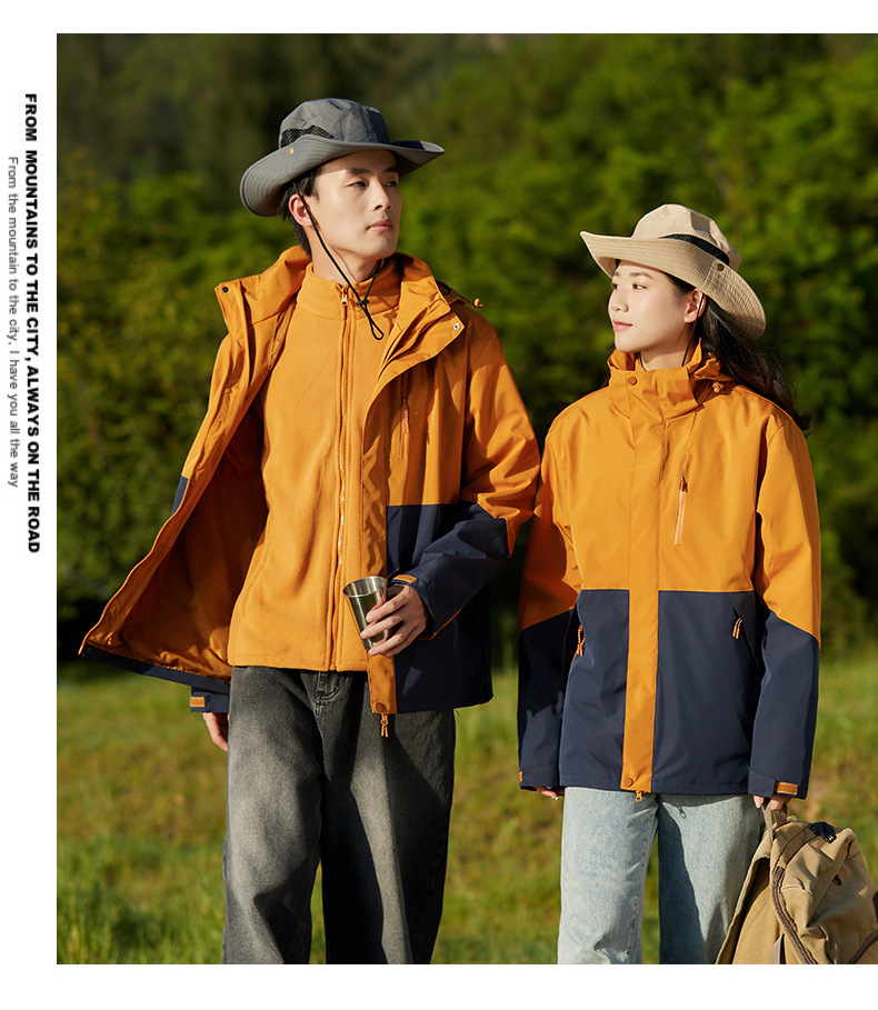 봄과 가을 야외 기모 재킷 남자의 유행 재킷 여자의 3-in-1 따뜻한 작업복 플러스 사이즈 방풍 투피스 세트 도매스토어 가기