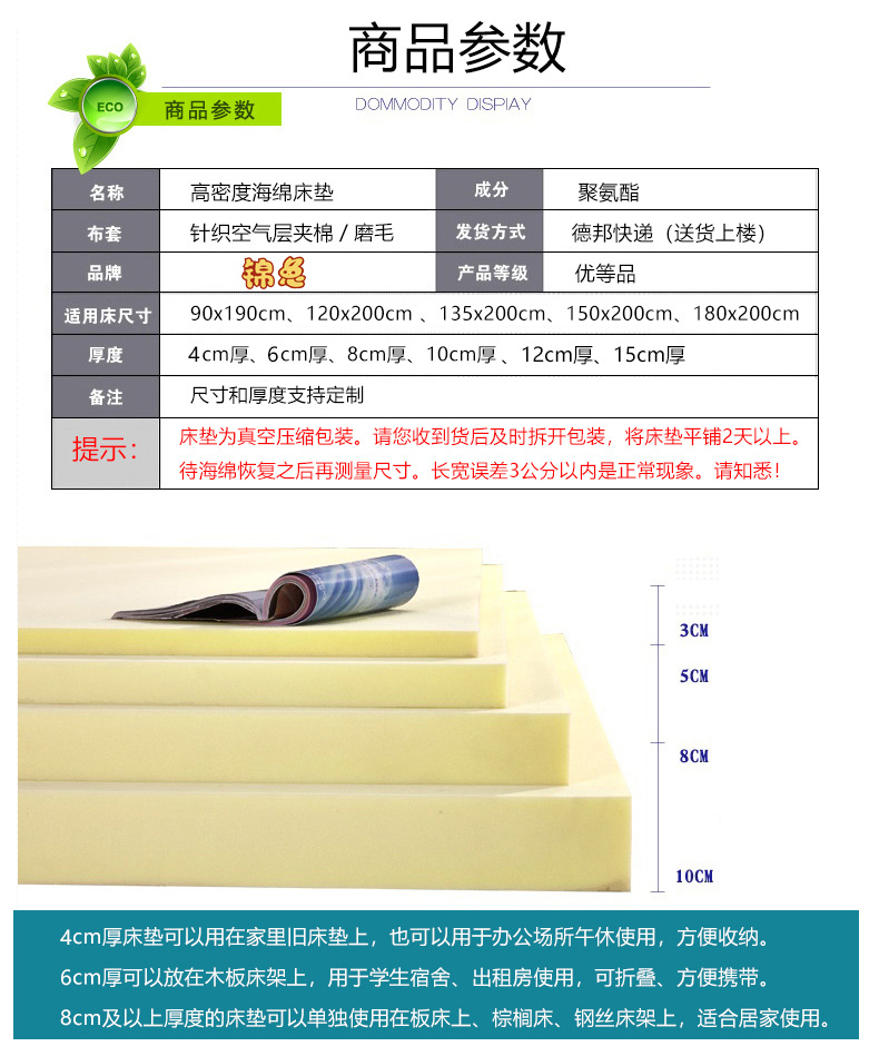 고밀도 스폰지 매트리스 패딩 하드 스폰지 매트리스 학생 기숙사 세트 매트리스 싱글 폼 매트리스 쿠션스토어 가기