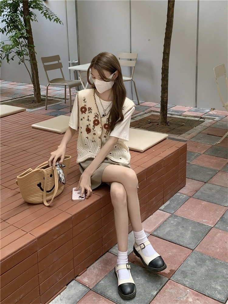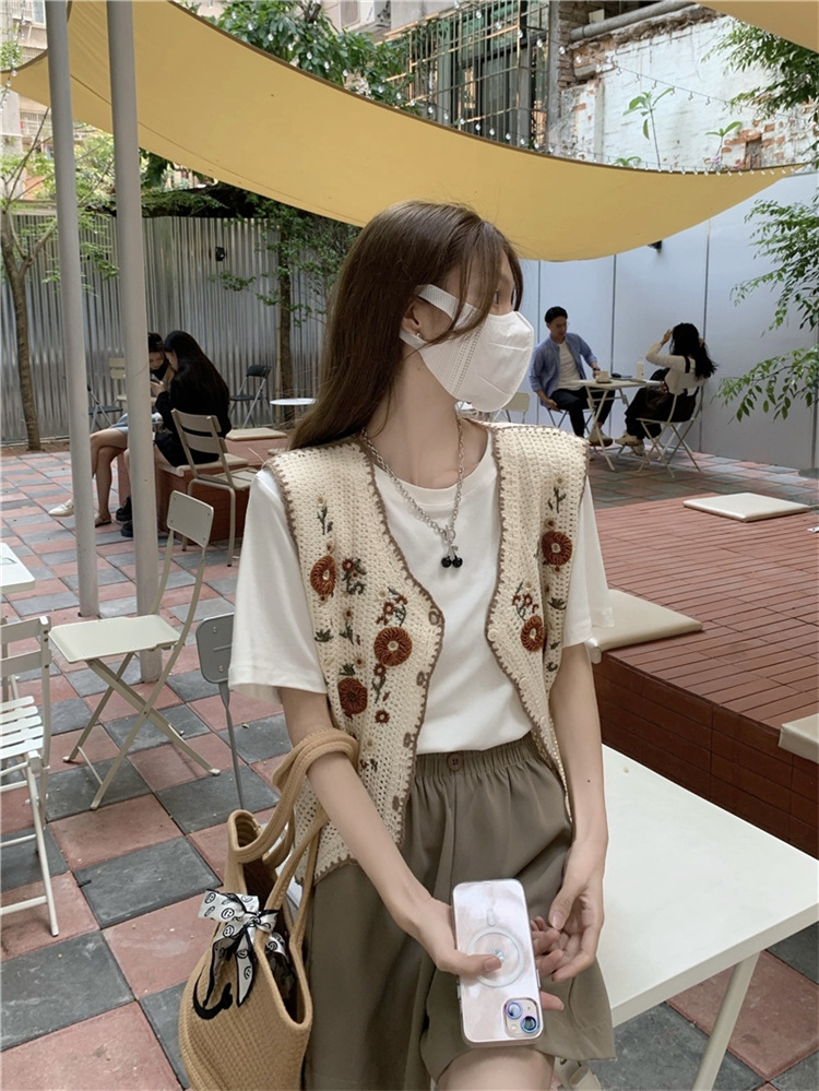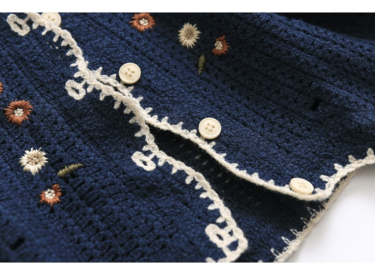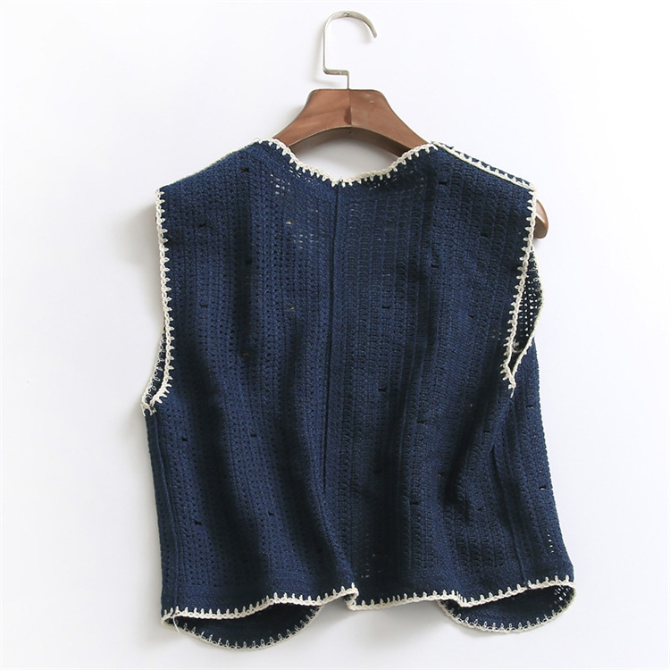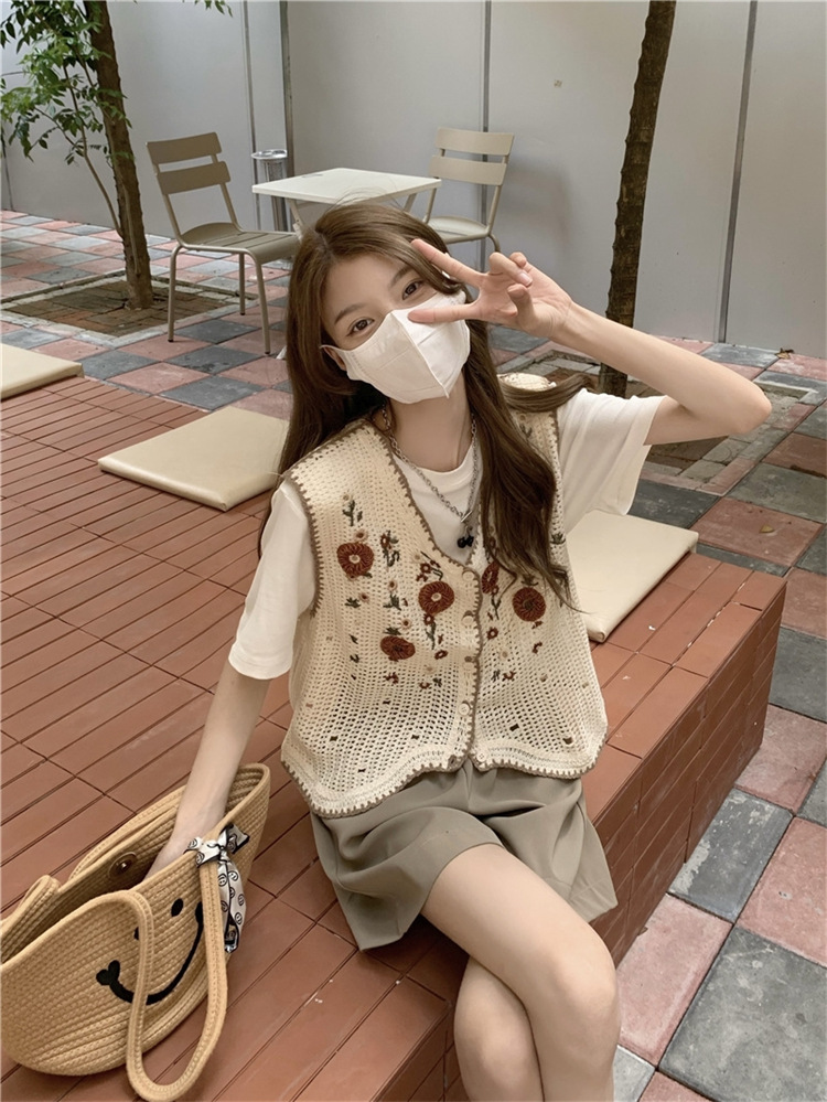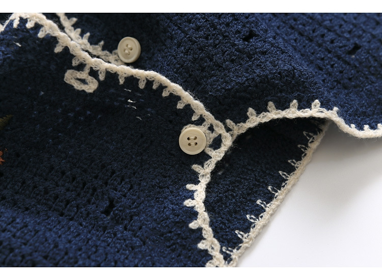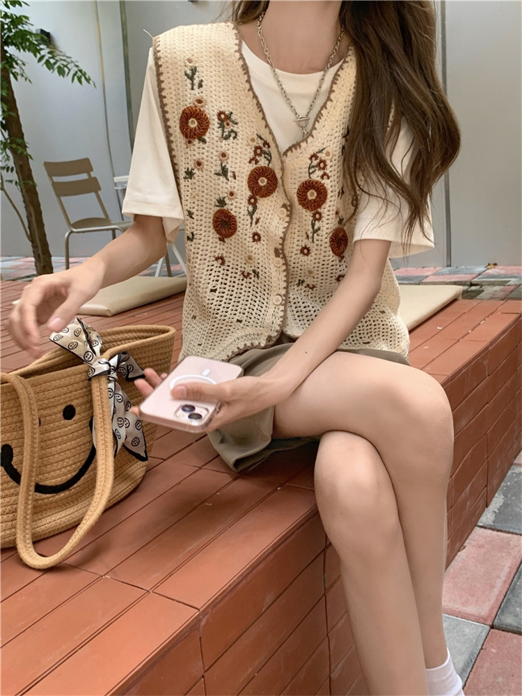 에스닉 스타일 자수 조끼 V 넥 외부 중공 민소매 자수 짧은 여성용 카디건 탑 니트 스웨터