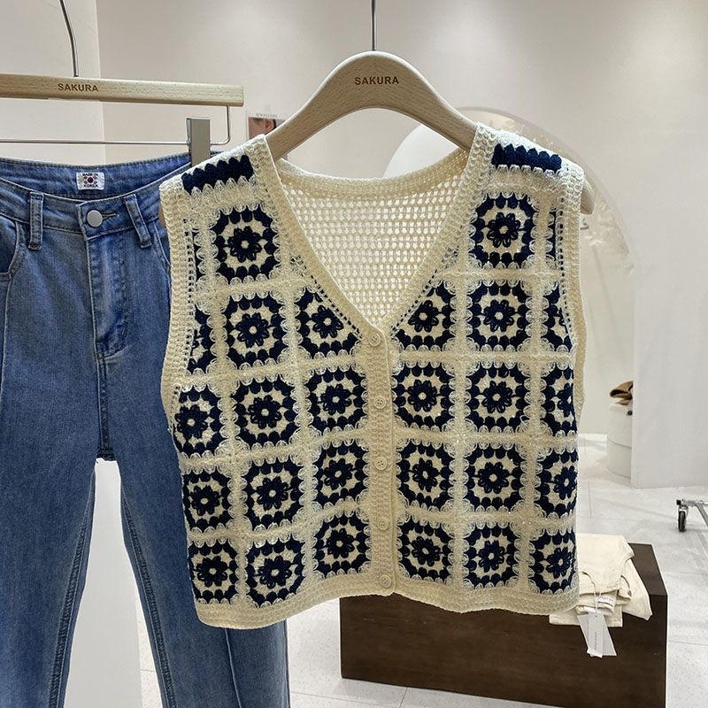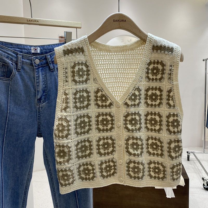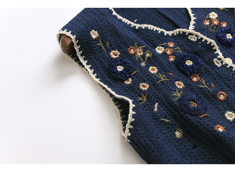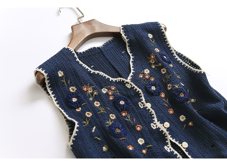 에스닉 스타일 자수 조끼 V 넥 외부 중공 민소매 자수 짧은 여성용 카디건 탑 니트 스웨터스토어 가기