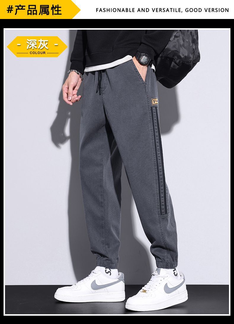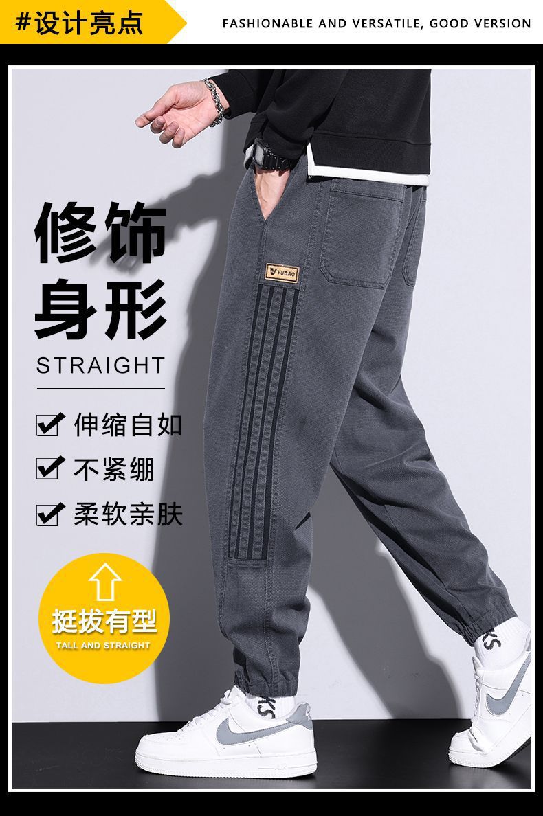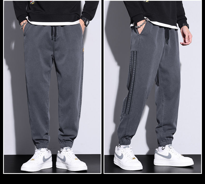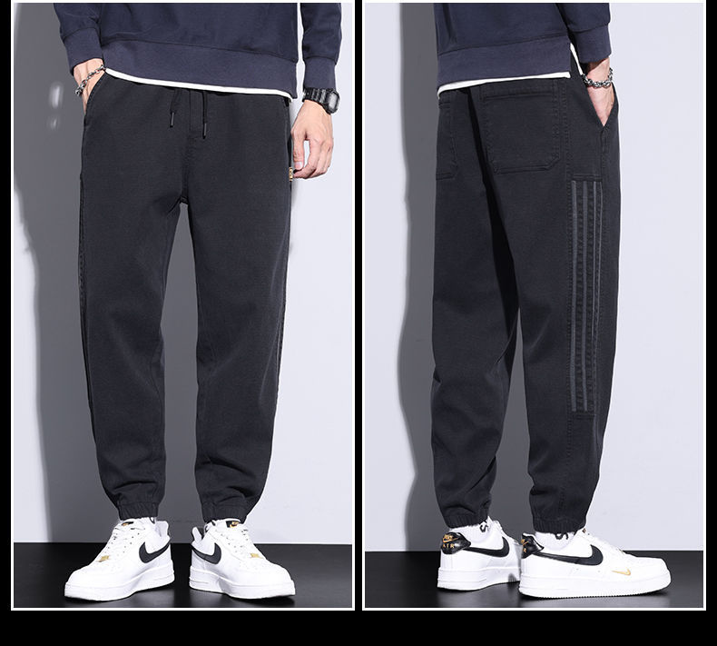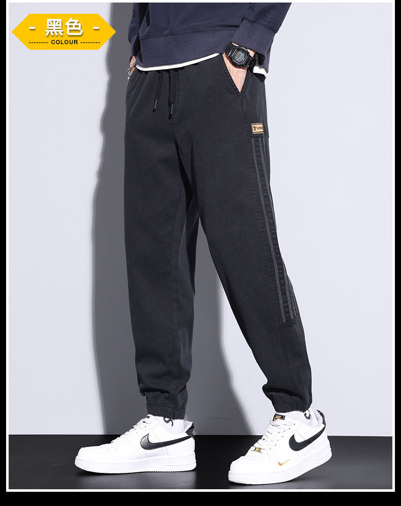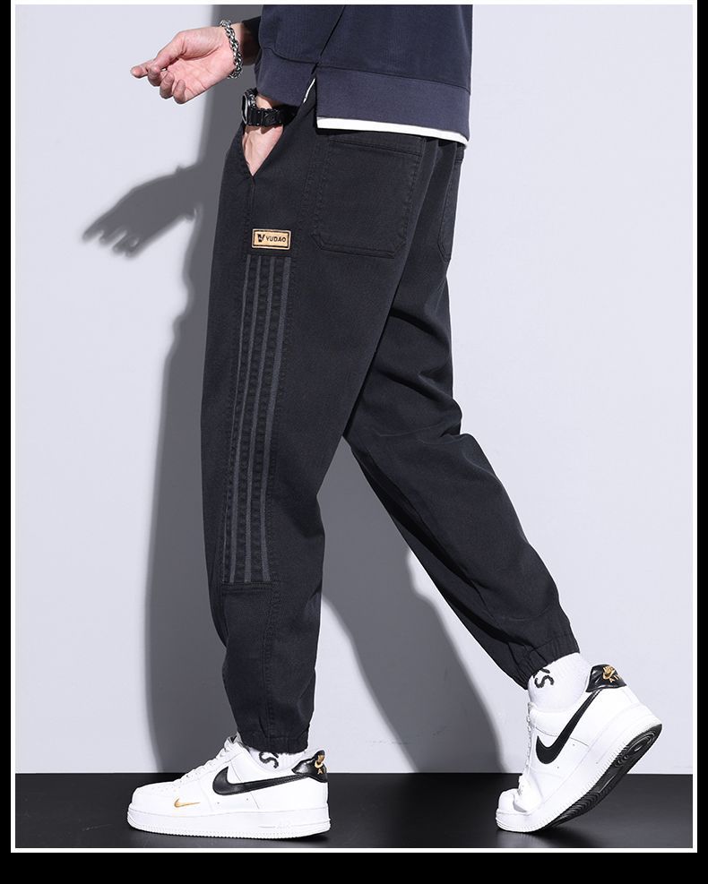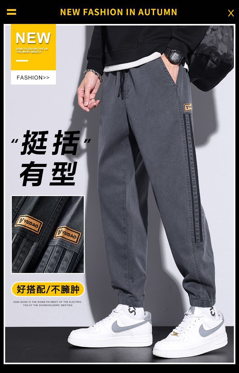 두오유 가을 신상 남성 캐주얼 바지 스트라이프 디자인 루즈핏 조거 팬츠 하렘 롱 팬츠 남성용 기모 안감스토어 가기