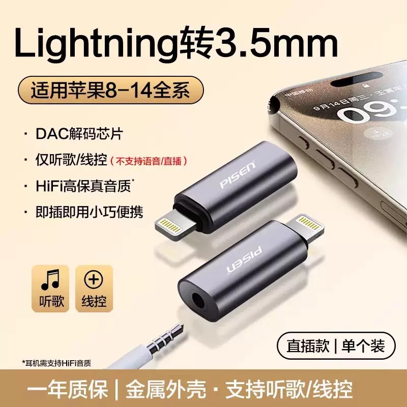• 【라이트닝(수) to 3.5mm 변환 젠더 (아이폰 8-14 호환)】 디지털 디코딩 * 음악 감상 지원 * 통화/라이브 방송 음성 지원 불가