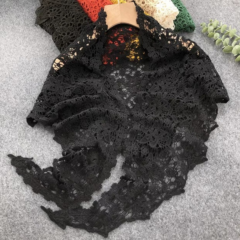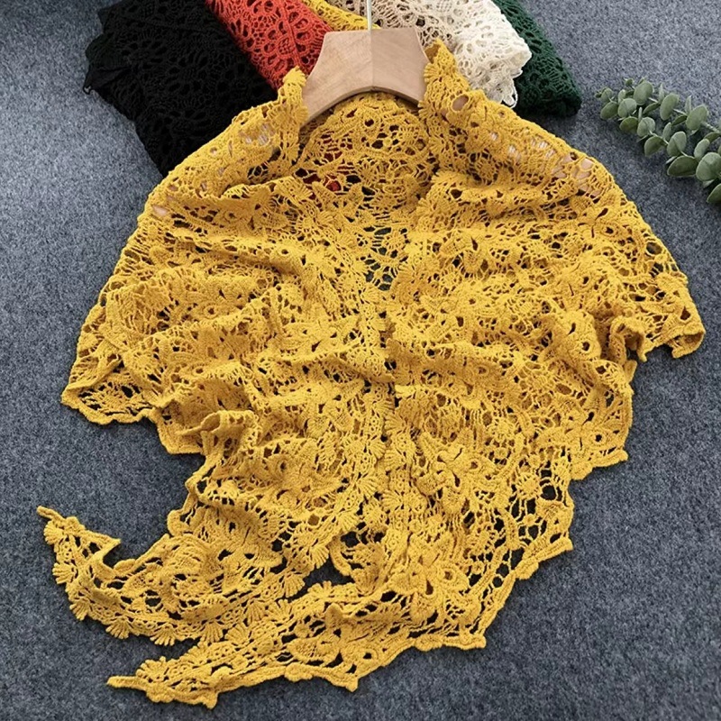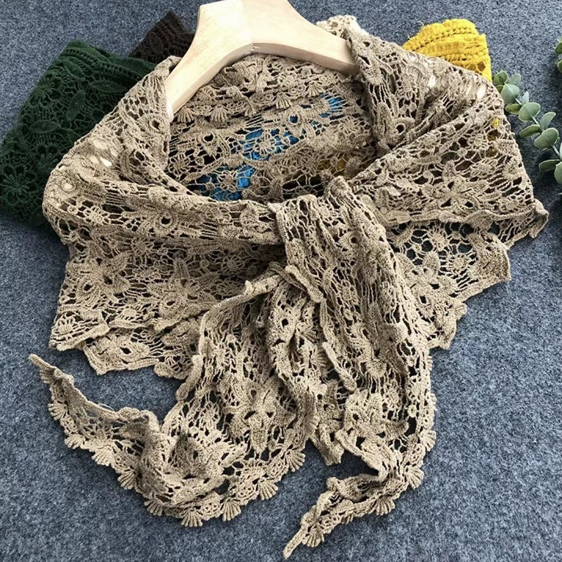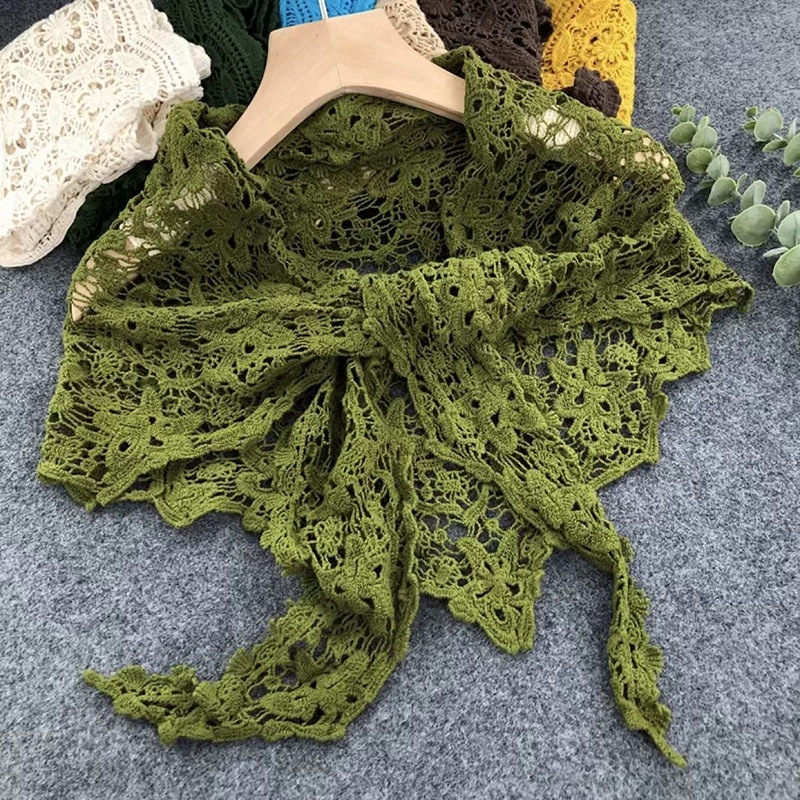 면 목 보호 레이스 중공 삼각형 스카프 뜨개질 숄 여름 원피스 여성의 겉옷