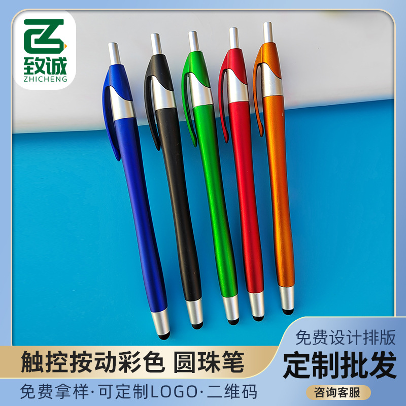 플라스틱 터치 프레스 컬러 볼펜 비즈니스 사무실 국경 용량 성 펜 선물 광고 서명 펜 도매