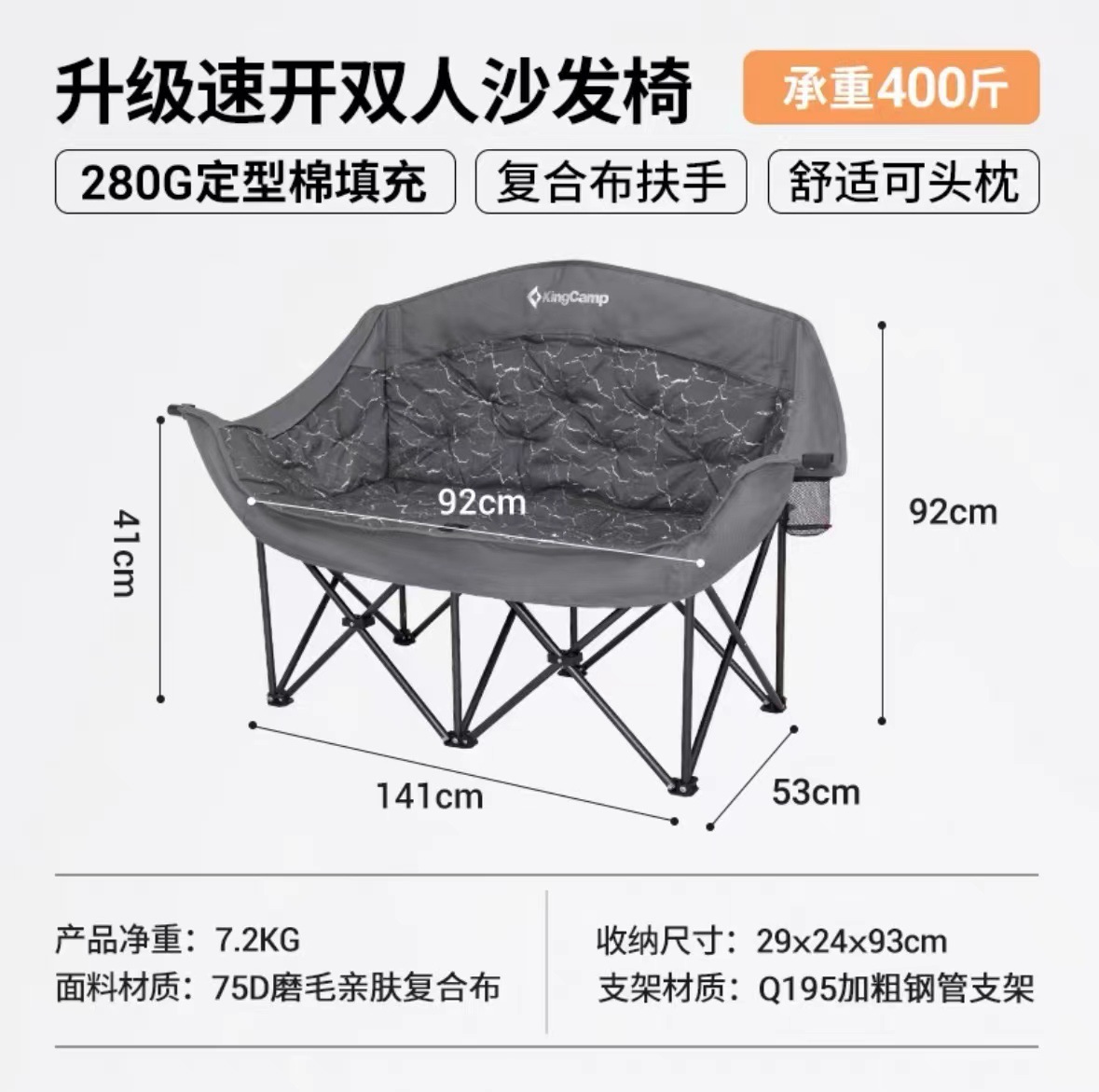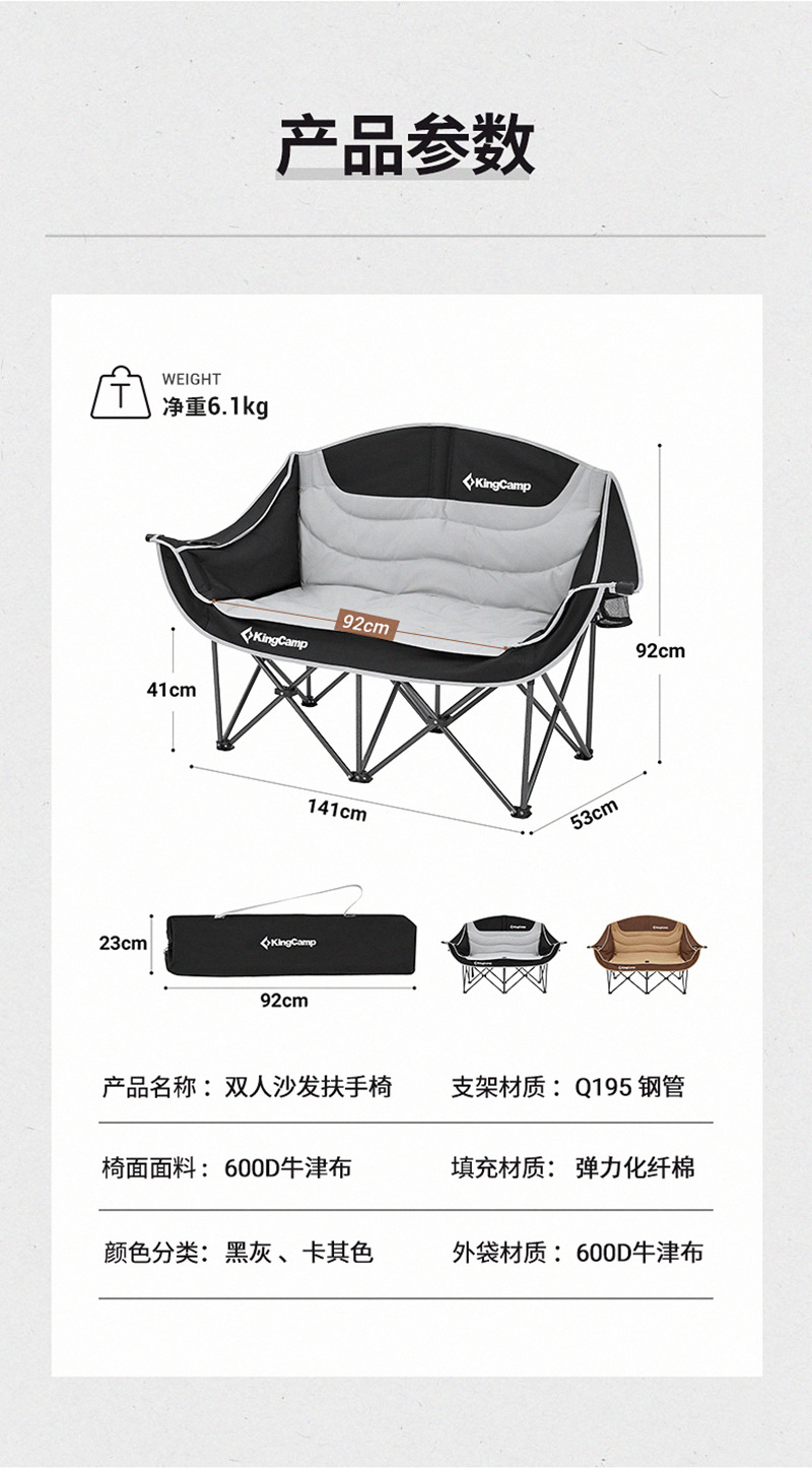 Kingcamp 더블 문 의자 야외 접이식 의자 안락 의자 소파 의자 휴대용 캠핑 의자 접이식 의자
