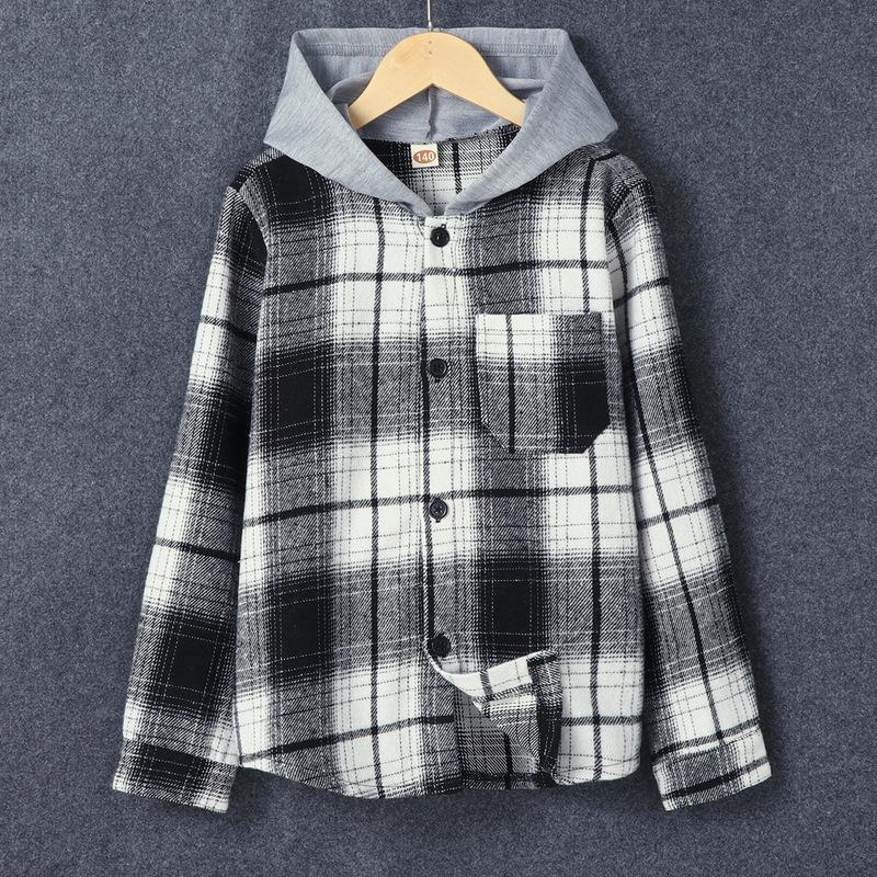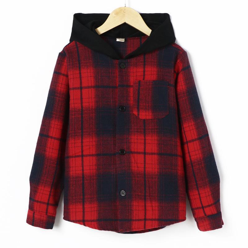 유럽과 미국 대외 무역 소년 격자 무늬 셔츠 패션 소년 캐주얼 따뜻한 셔츠 한국 격자 무늬 후드 재킷 셔츠스토어 가기