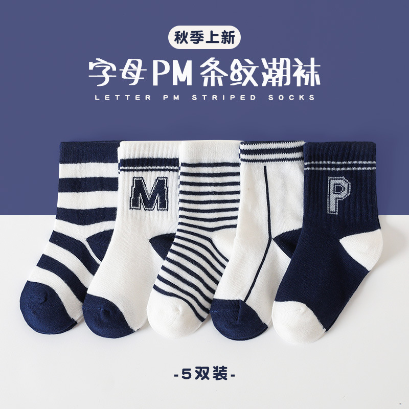 어린이 양말 봄과 가을 미드 튜브 양말 스트라이프 문자 MP 스포츠 양말 아기 양말 소년과 소녀 봄과 가을 미드 튜브 양말스토어 가기