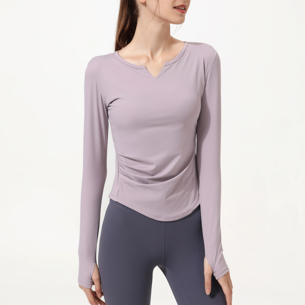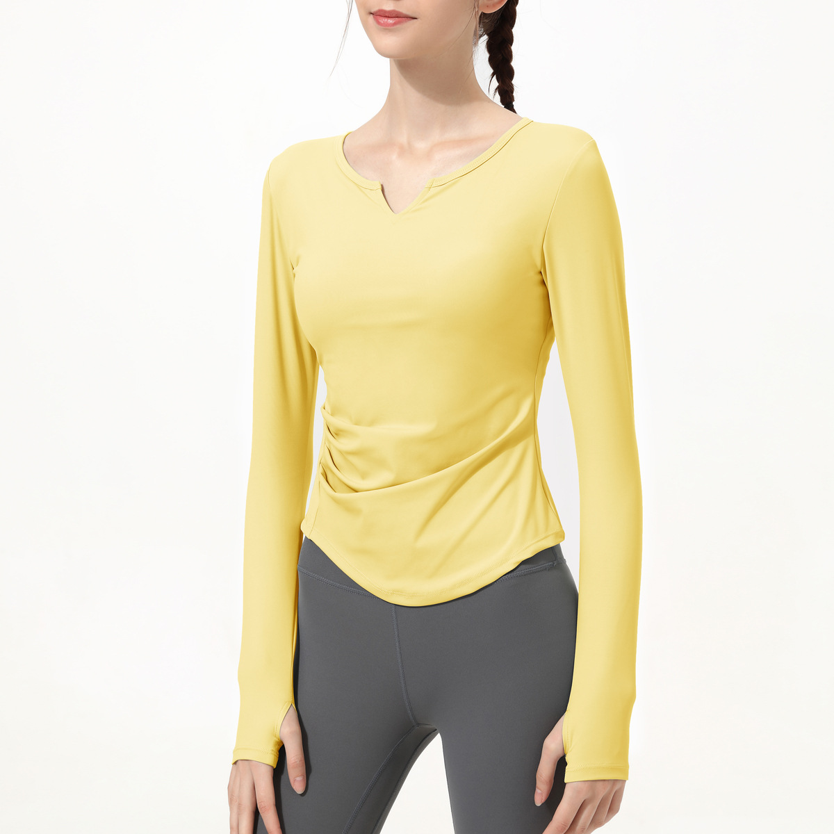 아테나 룰루 요가 세트 긴 소매 여성의 새로운 가슴 패드 V-넥 알몸 느낌 스포츠 러닝 피트니스 탑 티셔츠스토어 가기