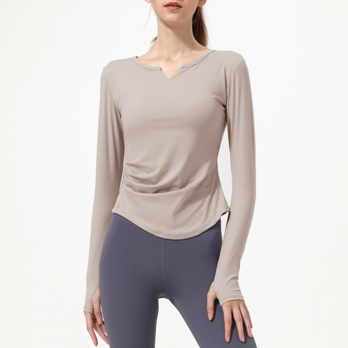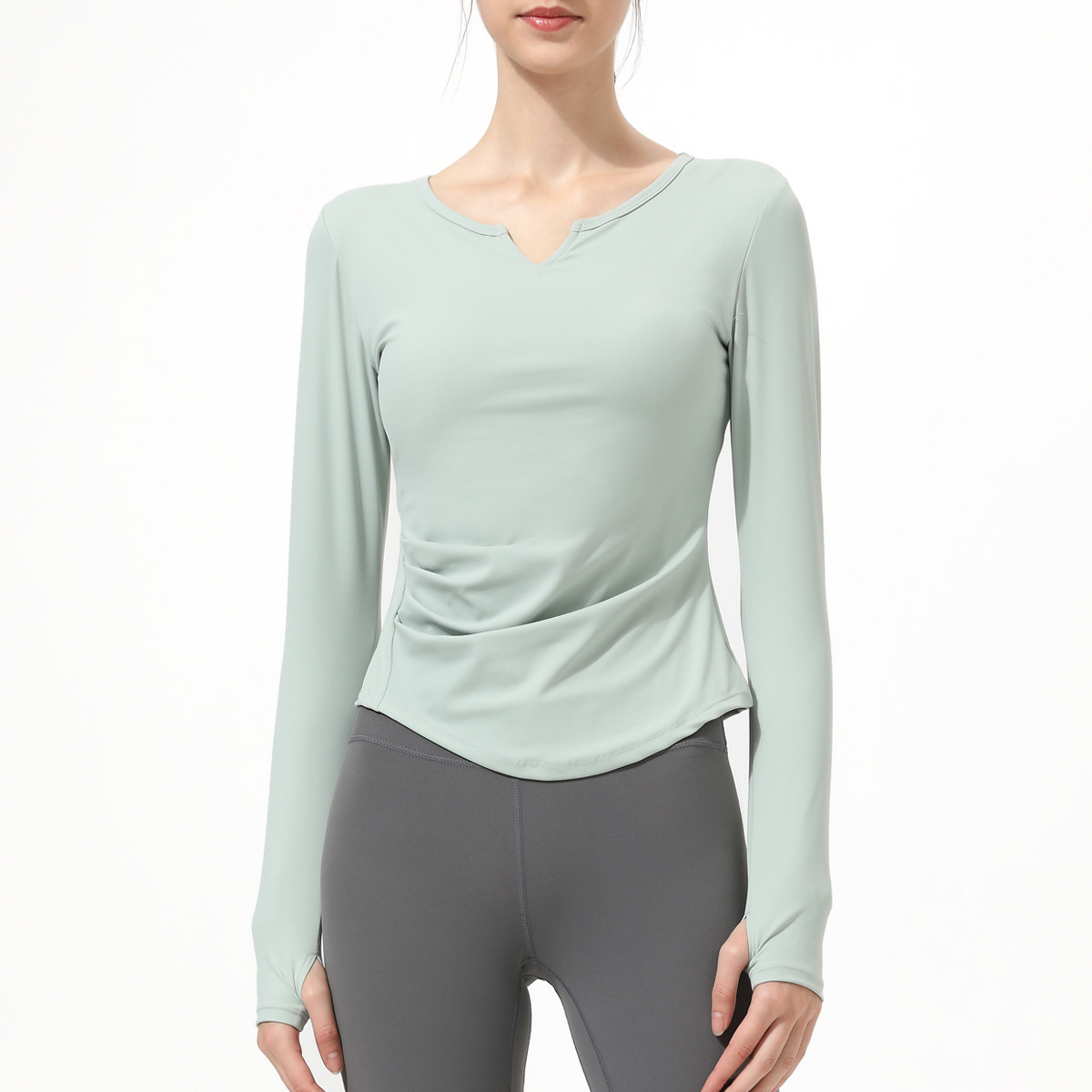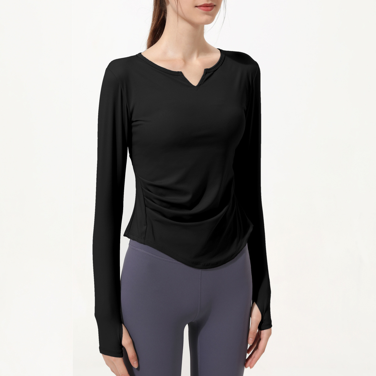 아테나 룰루 요가 세트 긴 소매 여성의 새로운 가슴 패드 V-넥 알몸 느낌 스포츠 러닝 피트니스 탑 티셔츠