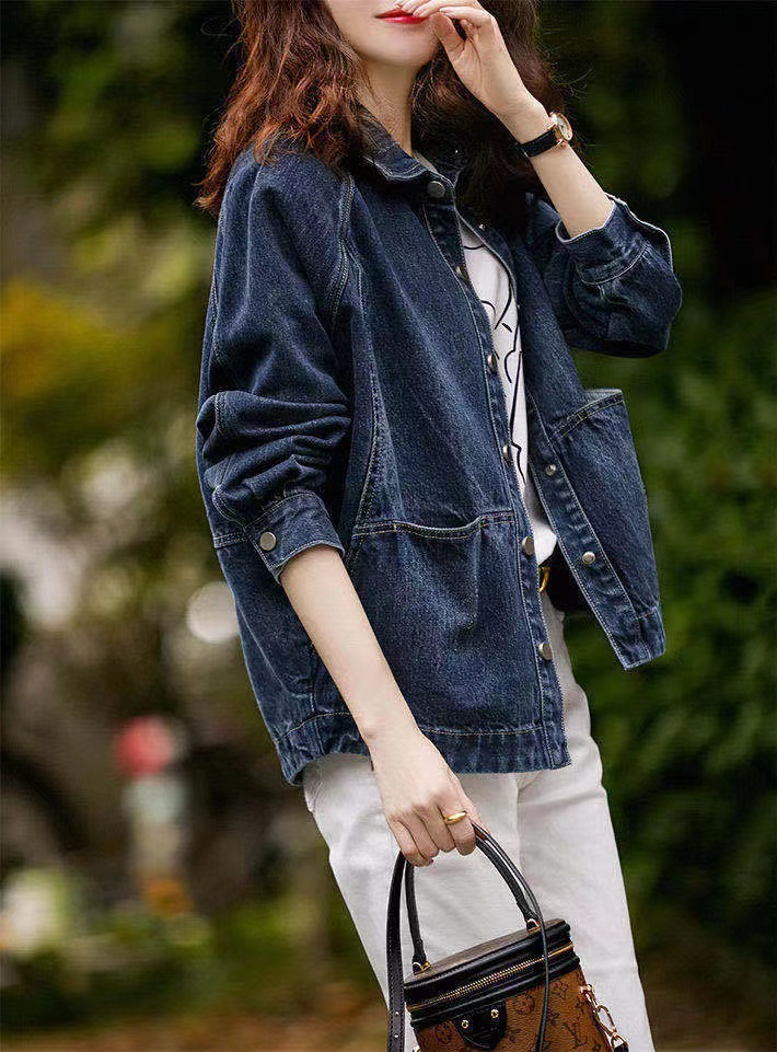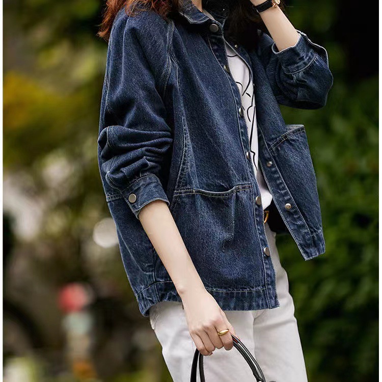 2021 봄과 가을 새로운 데님 재킷 코트 여성의 우아한 연령 감소 유행 프로필 모든 매치 느슨한 슬리밍 짧은 코트스토어 가기