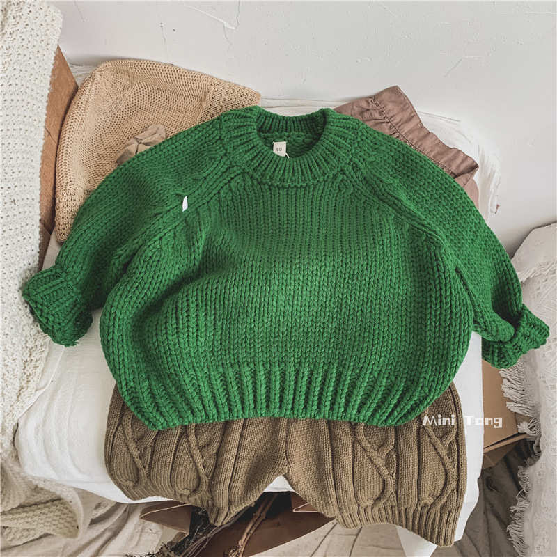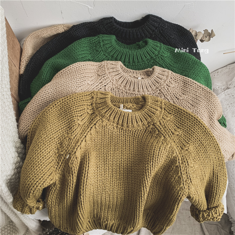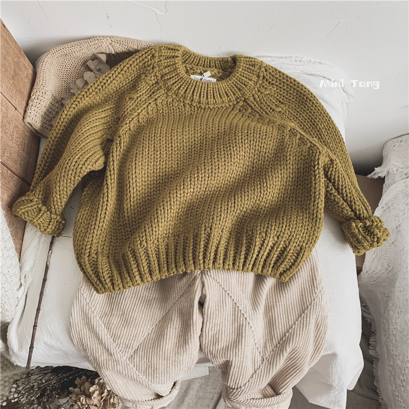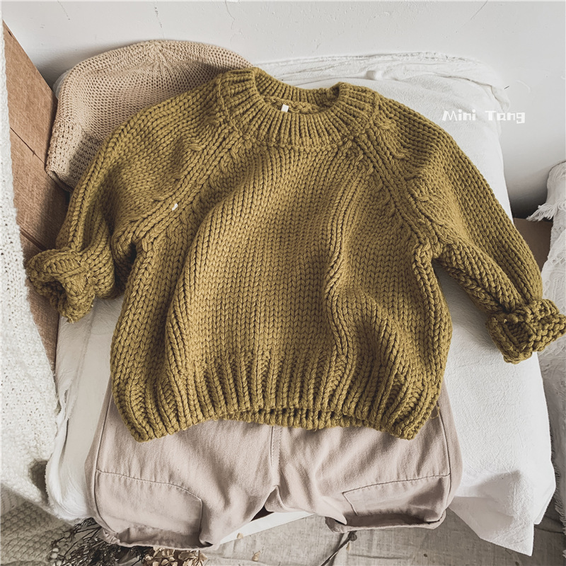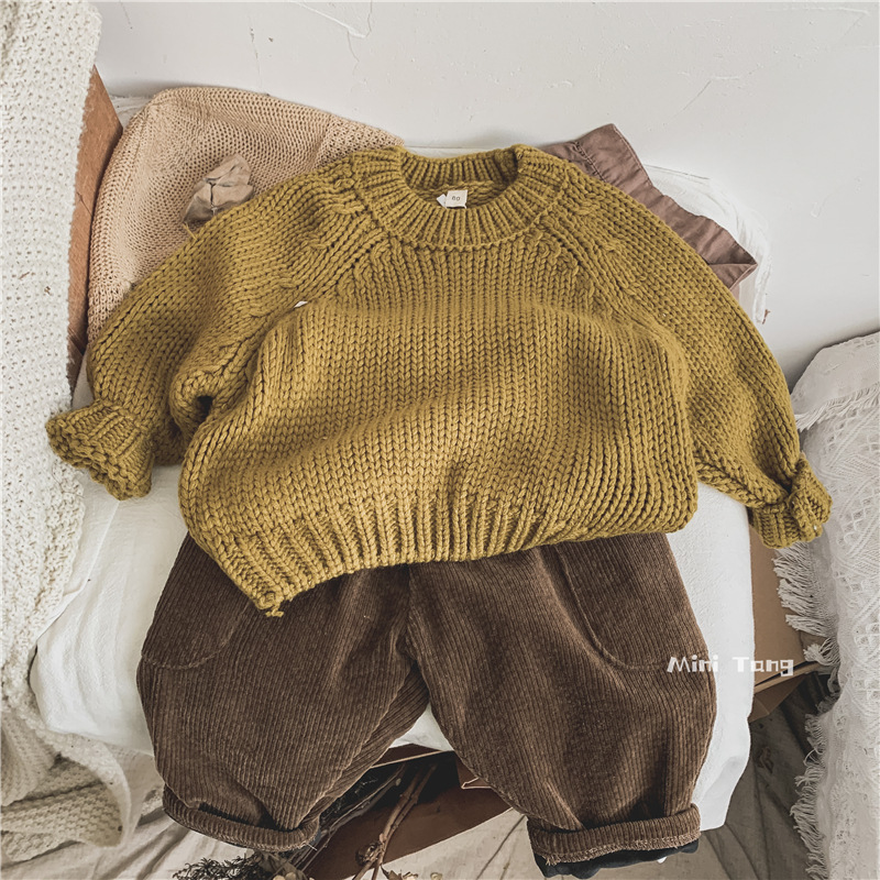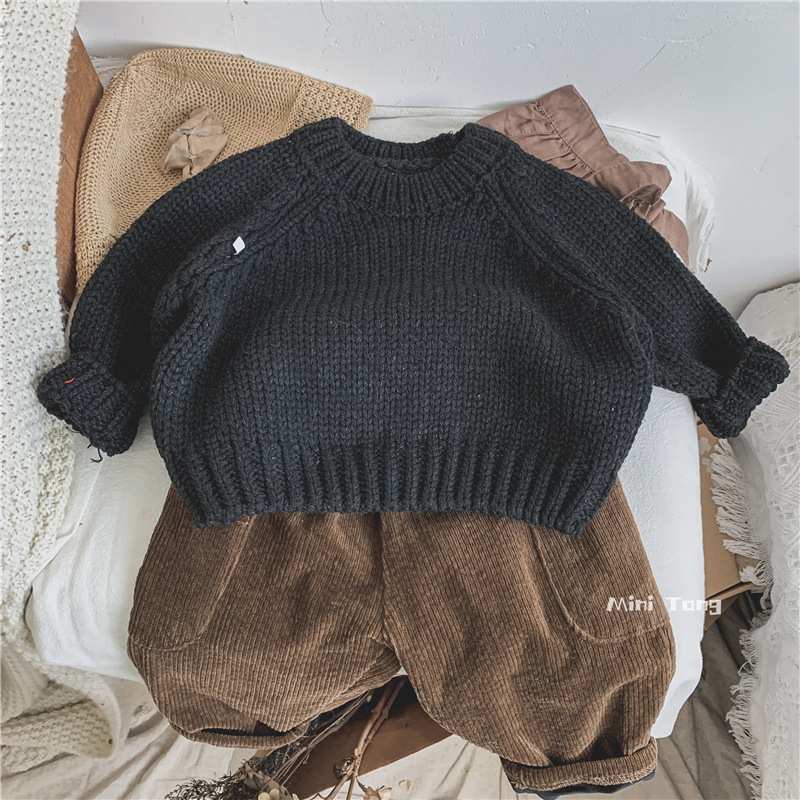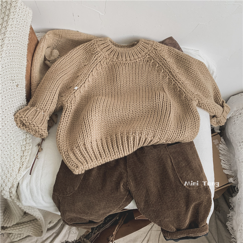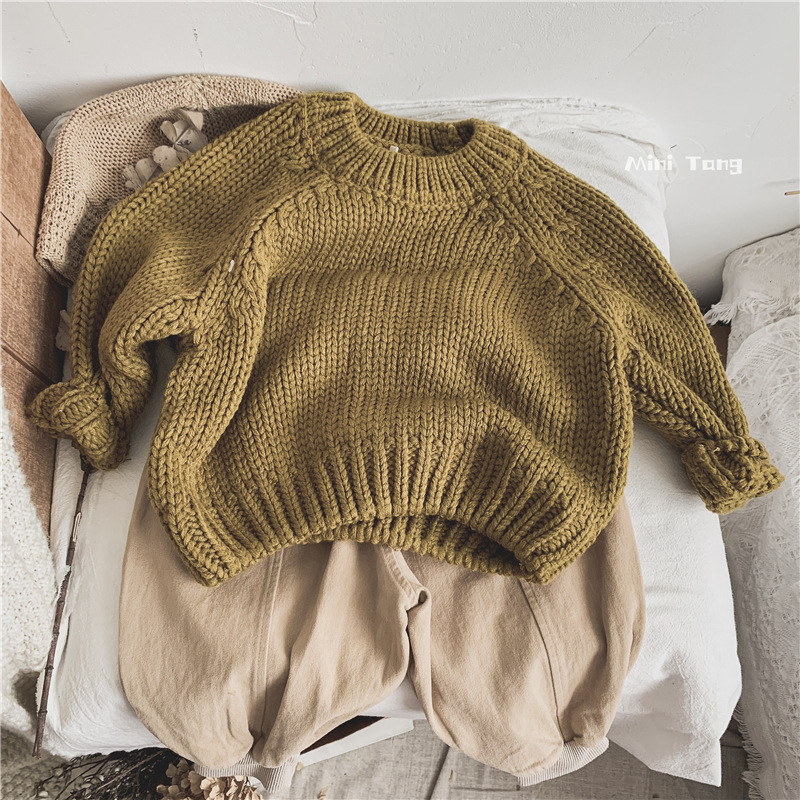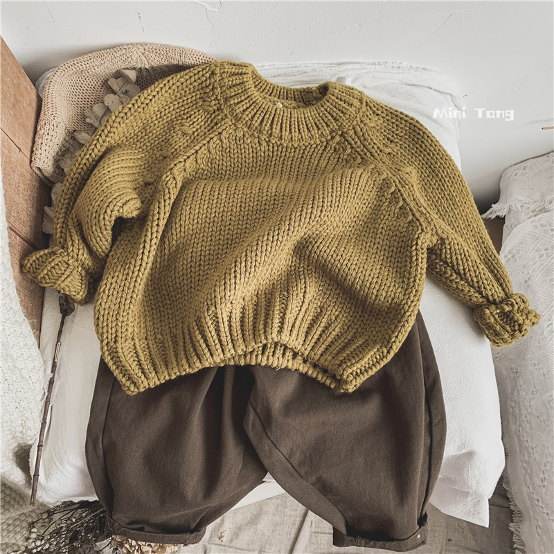 어린이 니트 스웨터 가을과 겨울 새로운 한국 스타일 모리 스타일 소년과 소녀를위한 두꺼운 크루넥 풀오버 스웨터