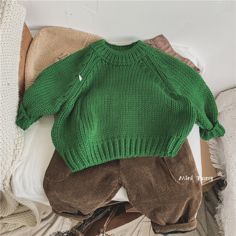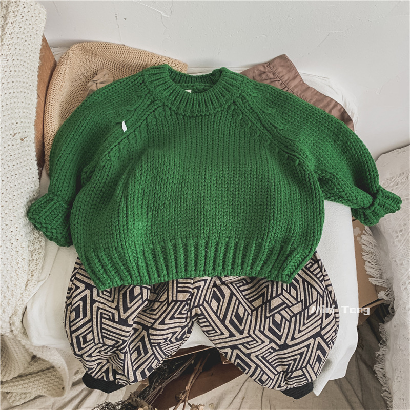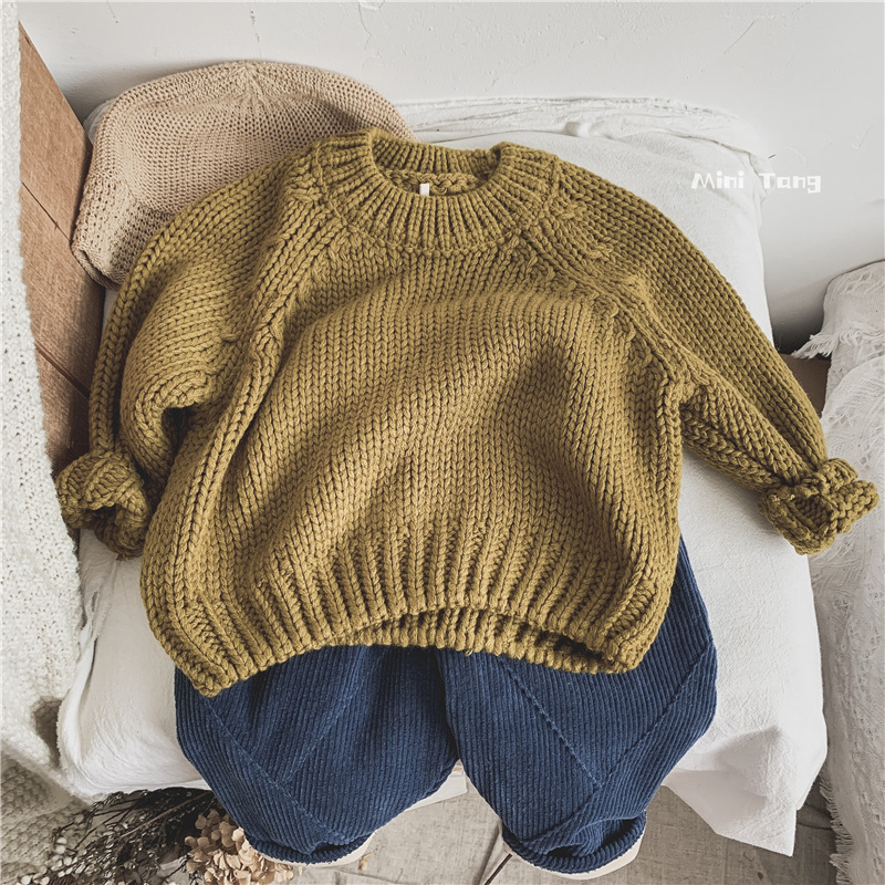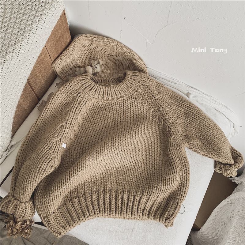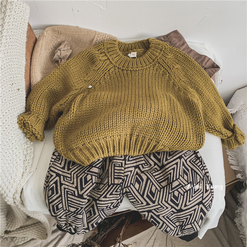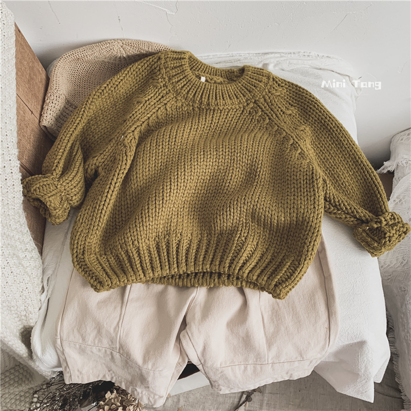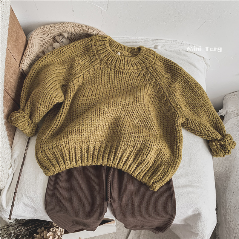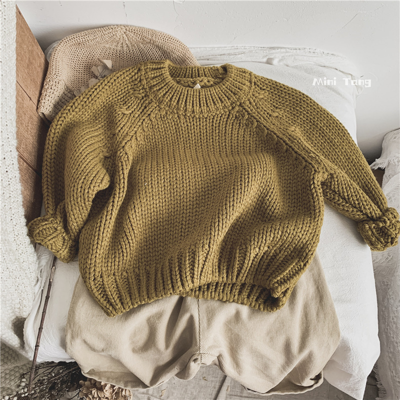 어린이 니트 스웨터 가을과 겨울 새로운 한국 스타일 모리 스타일 소년과 소녀를위한 두꺼운 크루넥 풀오버 스웨터