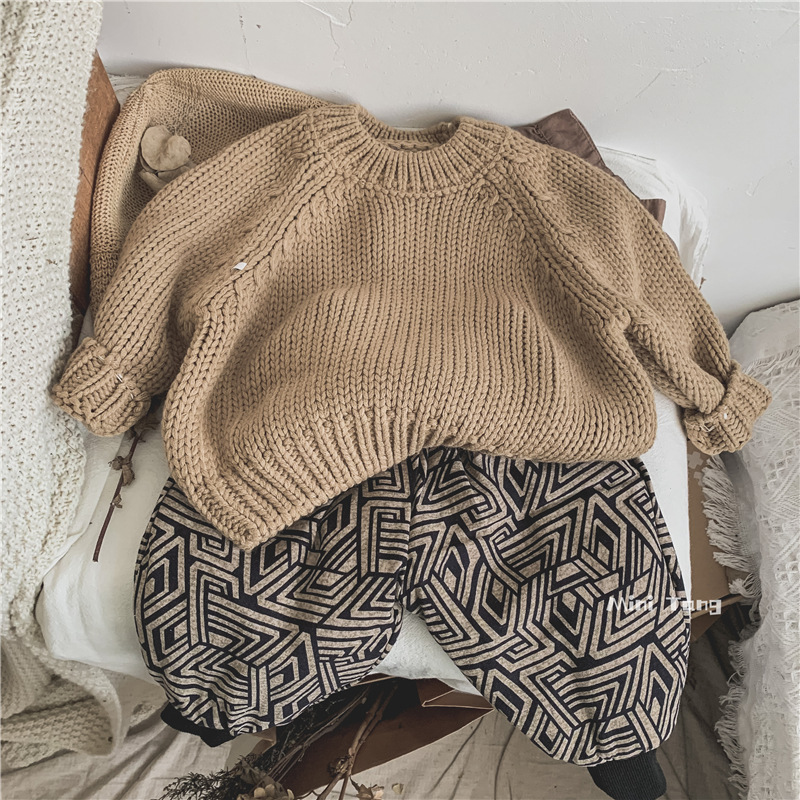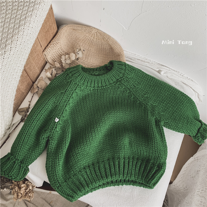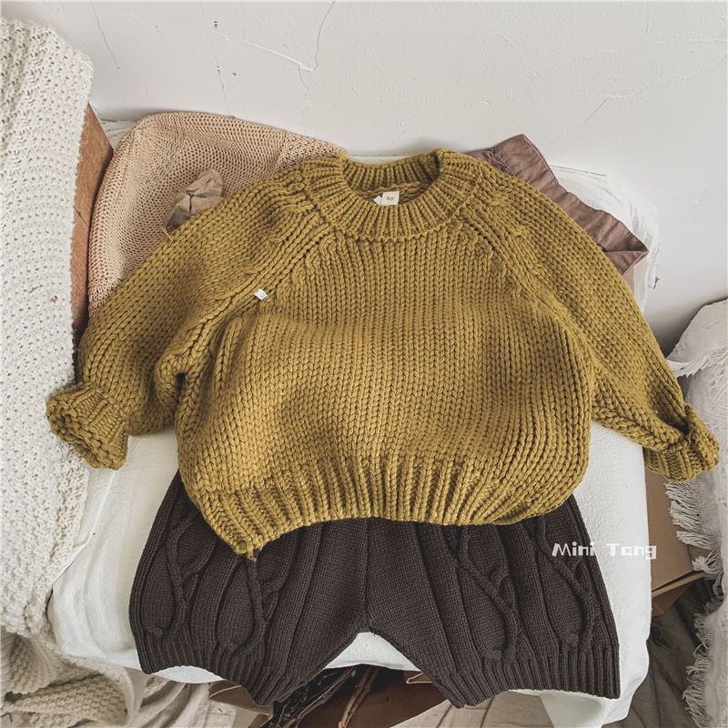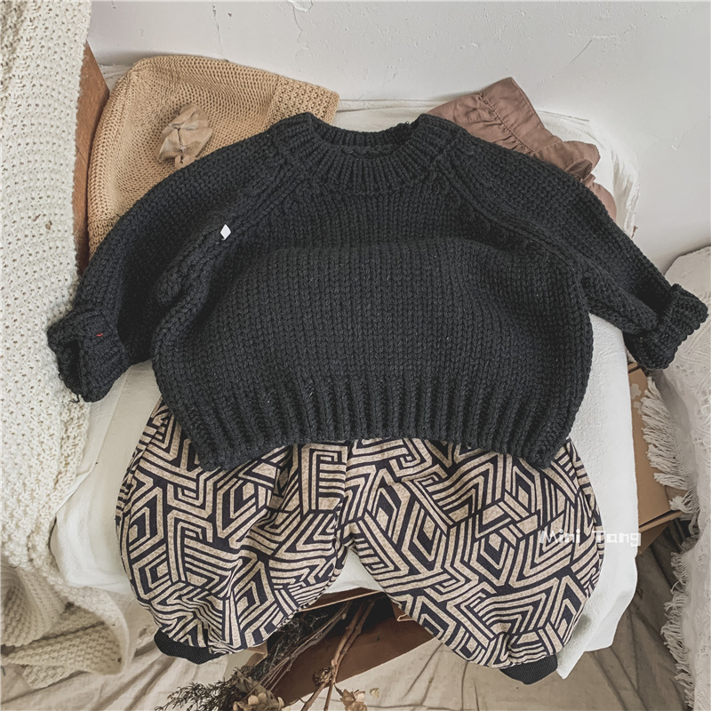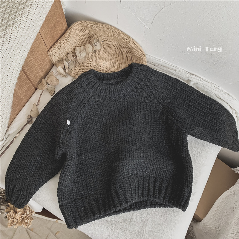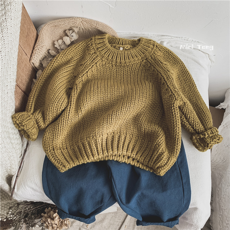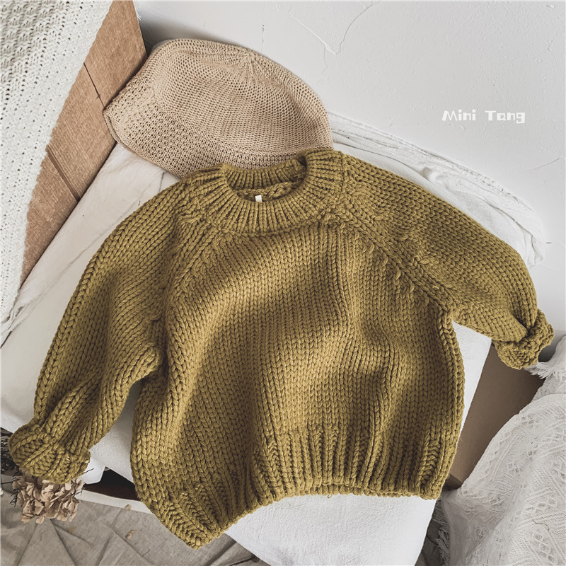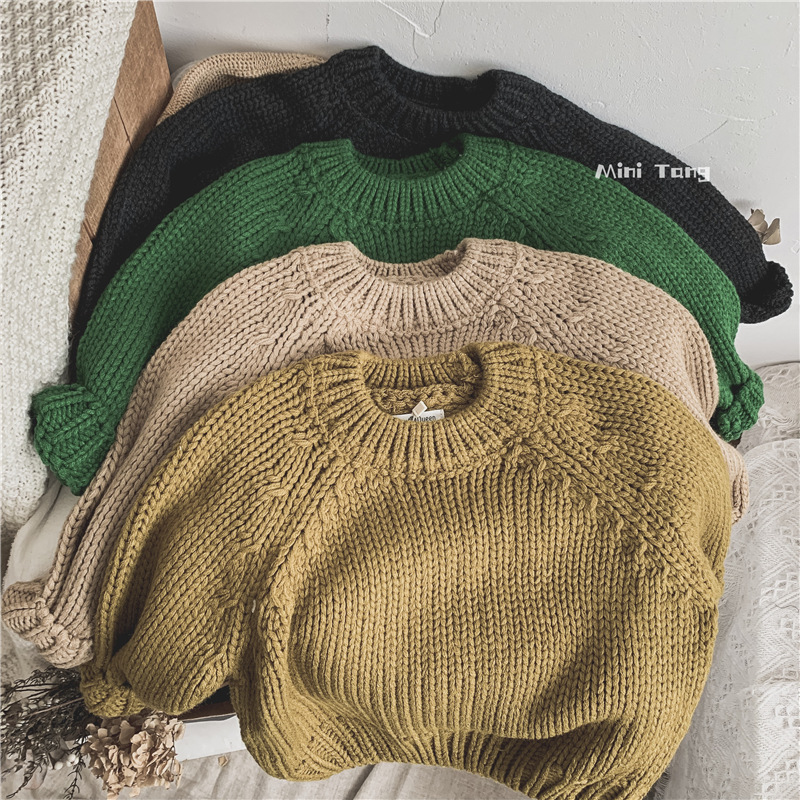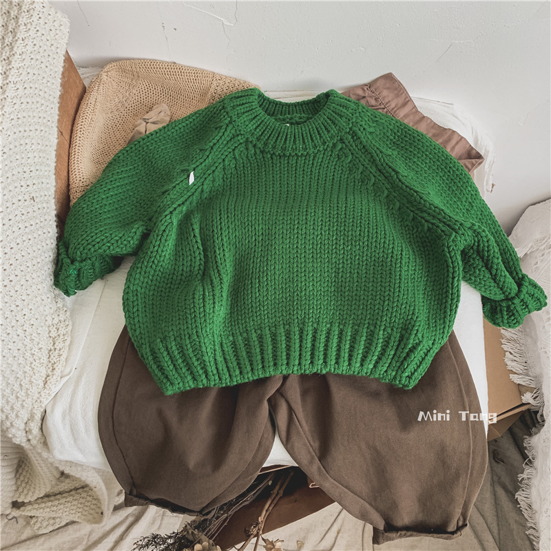 어린이 니트 스웨터 가을과 겨울 새로운 한국 스타일 모리 스타일 소년과 소녀를위한 두꺼운 크루넥 풀오버 스웨터
