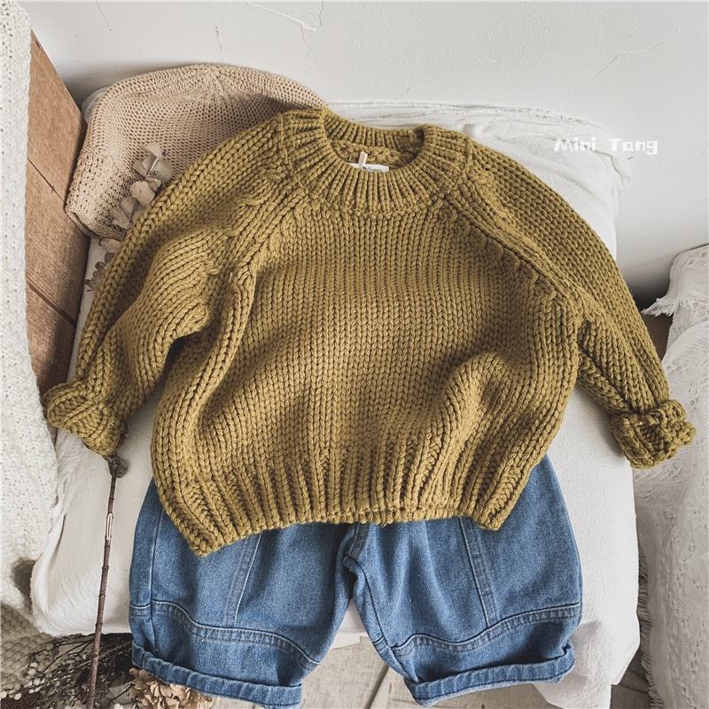 어린이 니트 스웨터 가을과 겨울 새로운 한국 스타일 모리 스타일 소년과 소녀를위한 두꺼운 크루넥 풀오버 스웨터스토어 가기