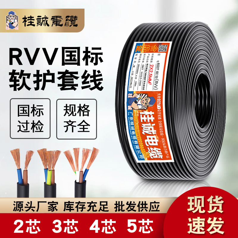 국가 표준 케이블 외장선 RVV2/3/4 코어 12.5/4/6 정사각형 순수 구리 코어 삼상 난연성 와이어 연선
