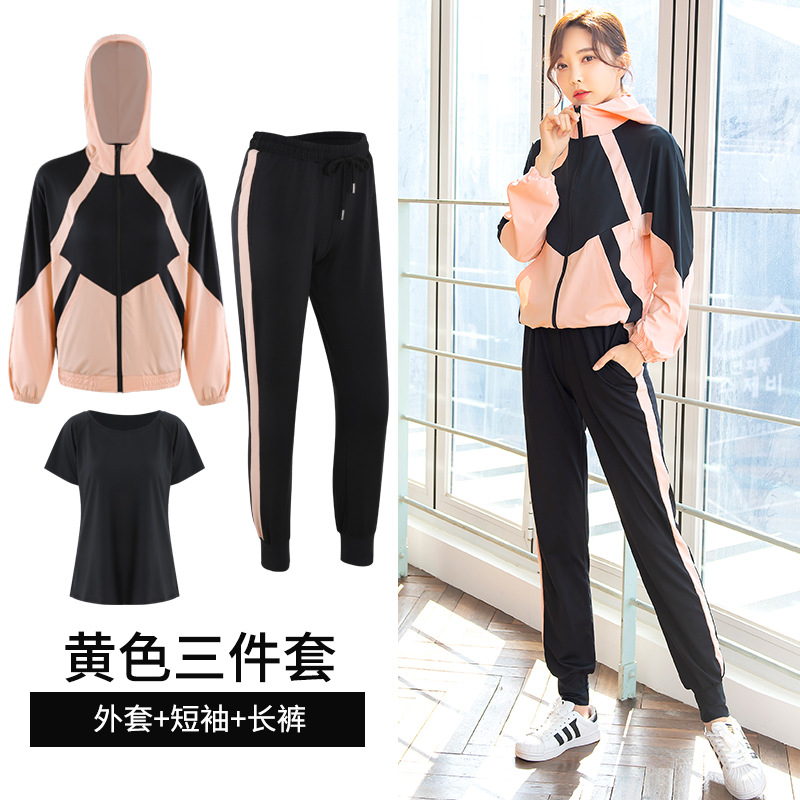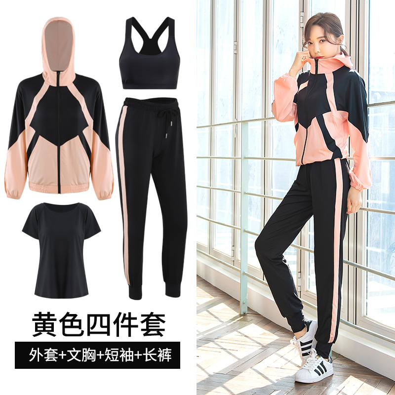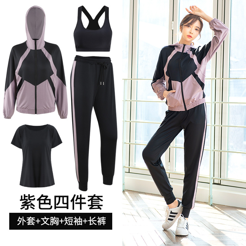 가을과 겨울 스포츠 피트니스 세트 여성의 새로운 플러스 사이즈 느슨한 슬리밍 아침 실행 속건 패션 4 피스 요가 세트스토어 가기