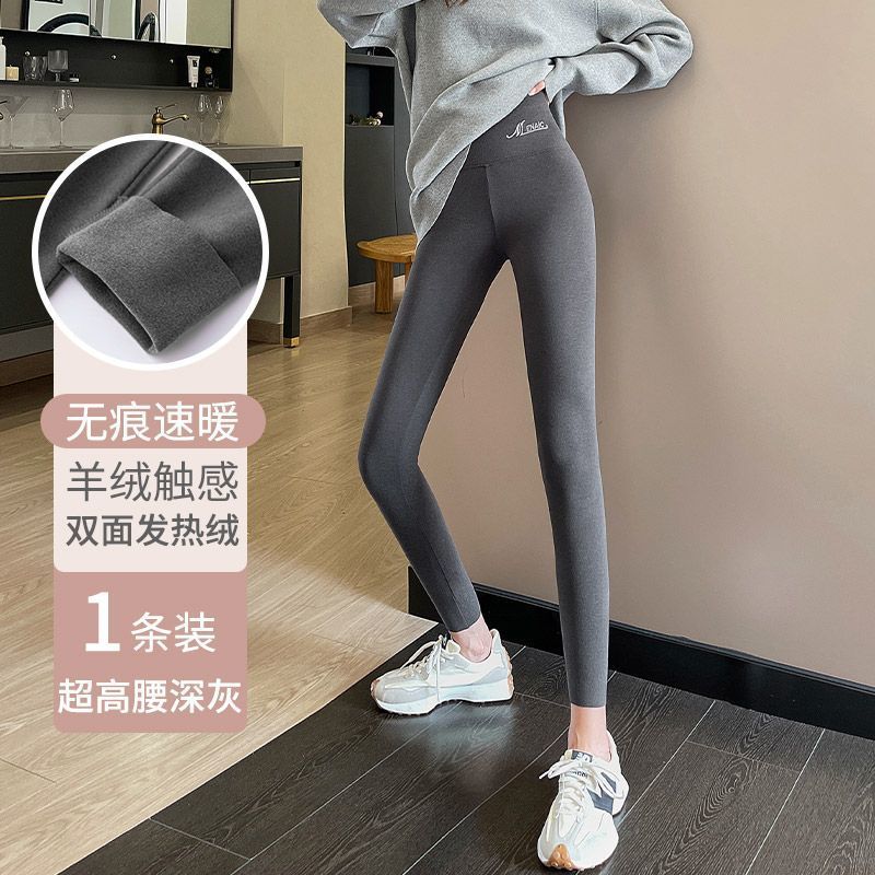 벨벳 레깅스 양면 프로스트 가을 바지 편안한 따뜻한 면화 바지 여성 외부 착용 높은 허리 자른 바지 기모 면 바지스토어 가기