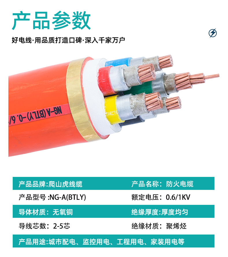 국가표준 내화전선 및 케이블 NG-A(BTLY) 미네랄 절연 폴리올레핀 피복 무장갑 내화 케이블