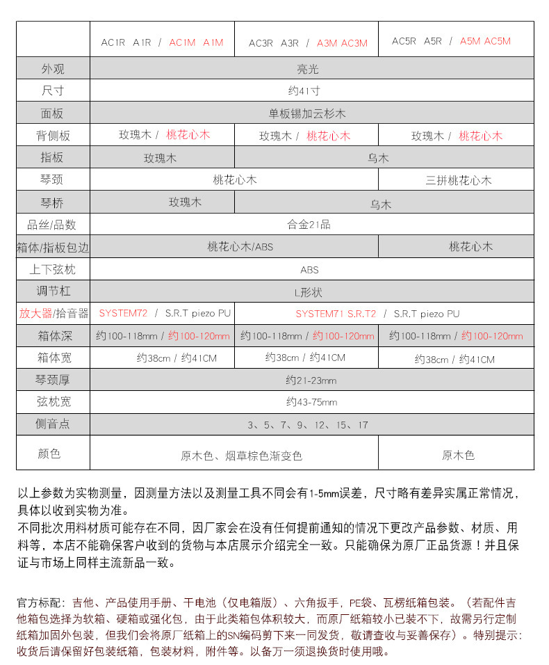 [도매] AMAHA 야마하 A1R/A3R/AC3R/A5R 풀베니어 민속 전기 상자 목제 기타 연주