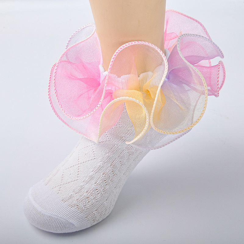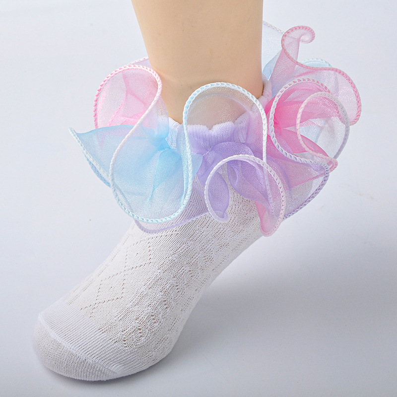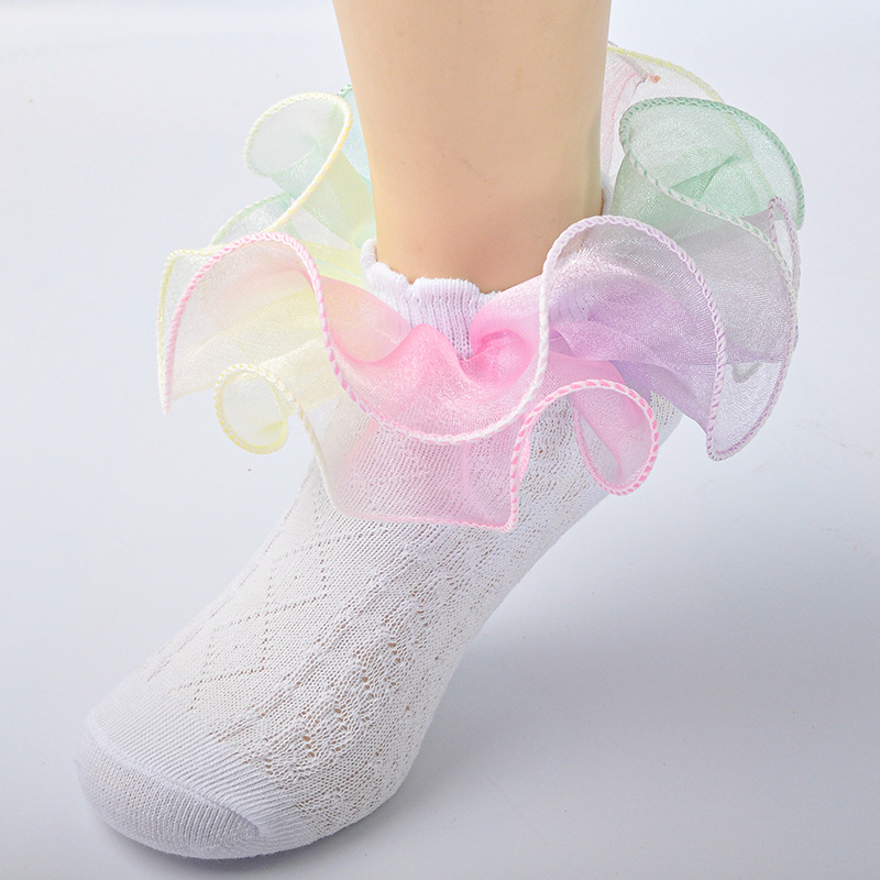 새 여자 양말 무지개 그라디언트 어린이 양말 레이스 짧은 튜브 양말 통기성 아기 양말 재고스토어 가기