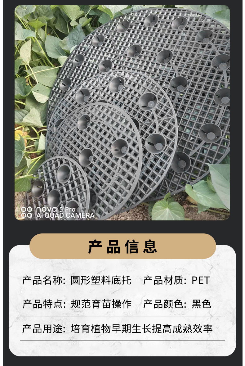 묘목 재배용 검정색 플라스틱 받침대, 나무 심기 용기, 원형 화분, 배수판, 뿌리 제어용 받침대