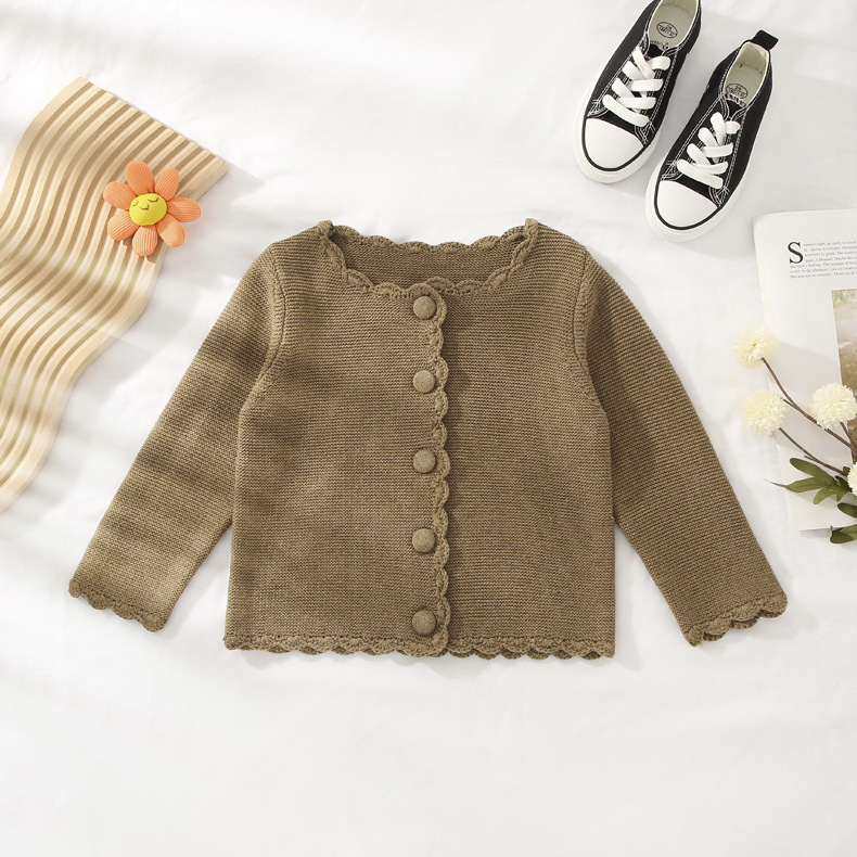 童装秋冬跨境ins女婴童手钩圆领开衫毛衣女宝宝加厚复古毛衣外套