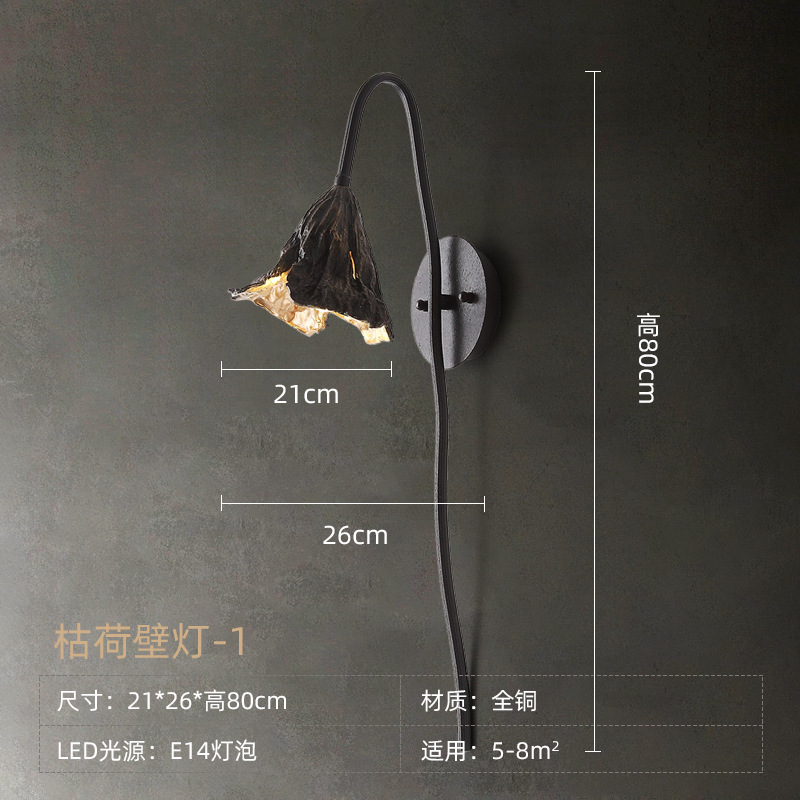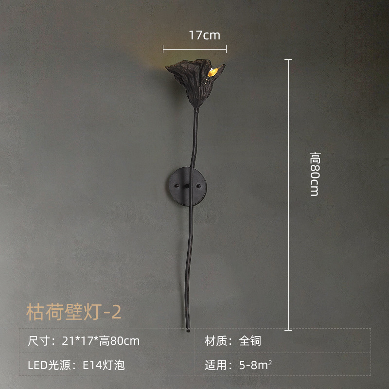 크리 에이 티브 풀 구리 죽은 연꽃 새로운 중국식 벽 램프 거실 침실 침대 옆 램프 젠 간단한 차 방 중국식 벽 램프
