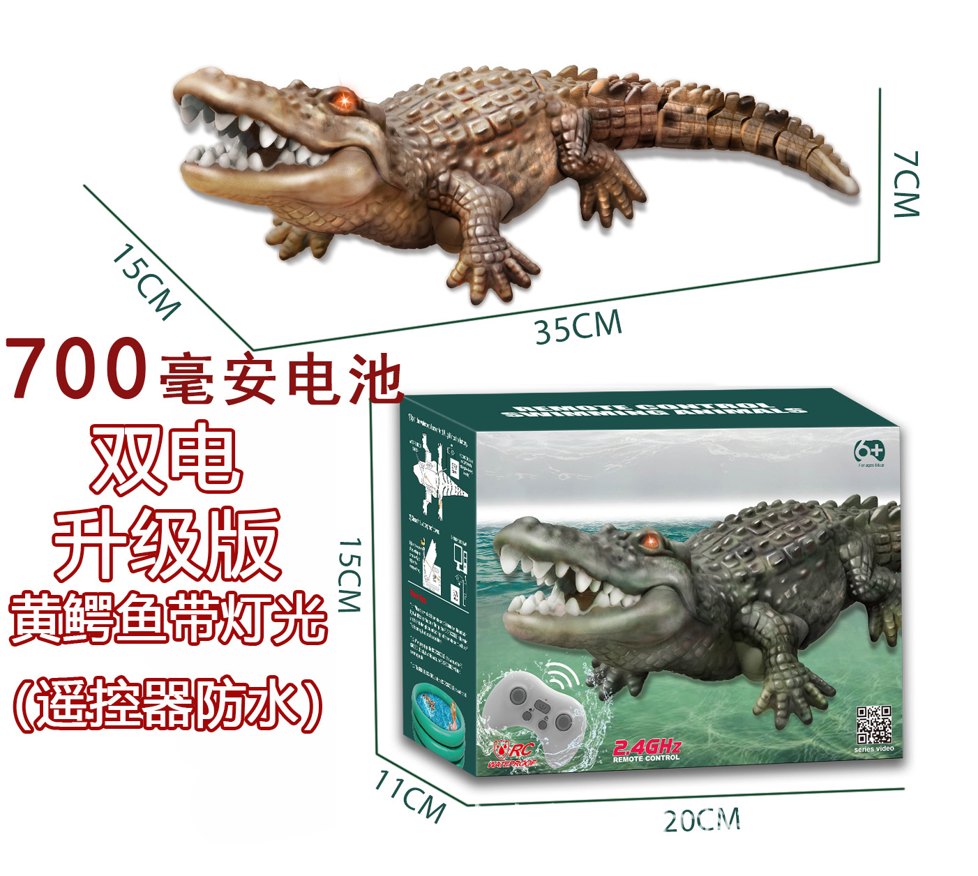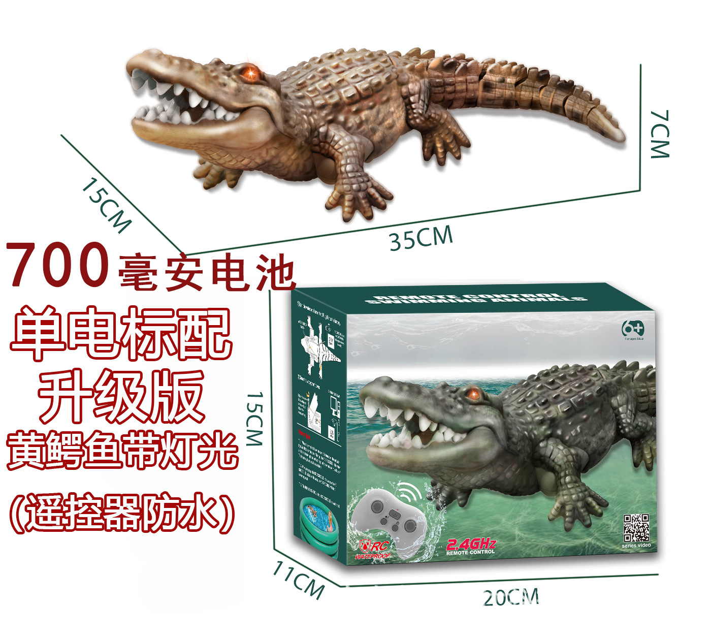 • 단일 전원 표준 * 빛이있는 노란색 악어 업그레이드 (원격 제어 방수)