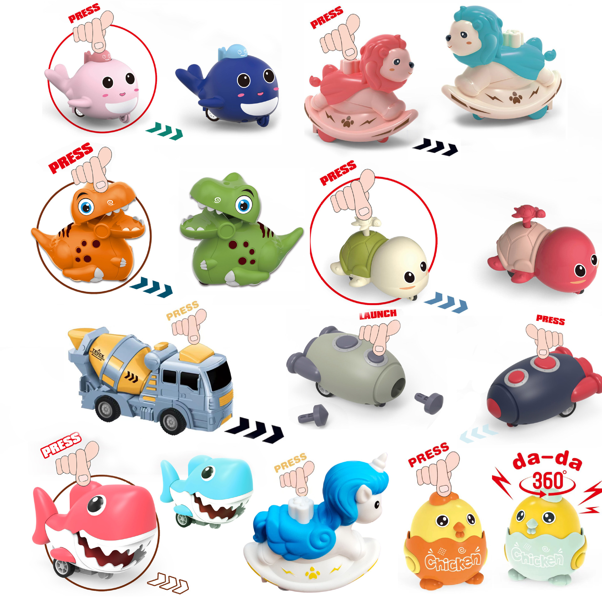 • 按压系列玩具发条玩具动物形状鲨鱼乌龟鲸鱼火箭狮子玩具男孩女孩折扣价:¥4.65