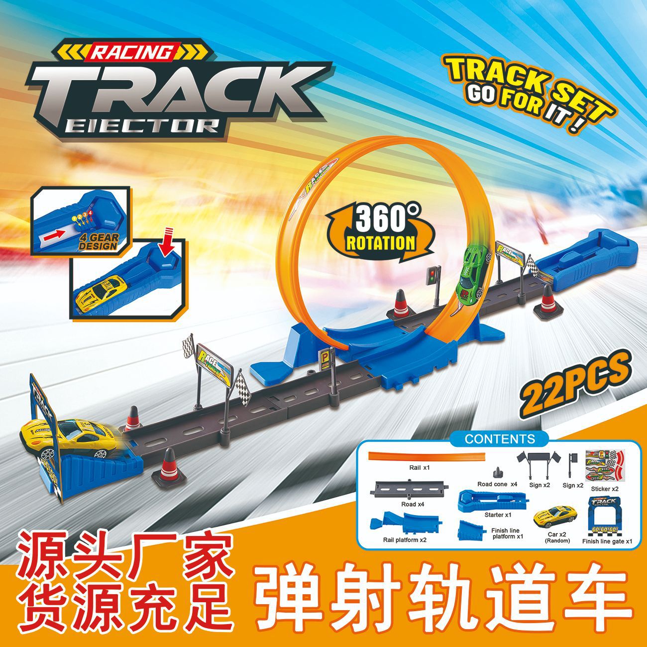 • 弹射轨道车22pc杂技过山车360°度旋转4档齿轮迷你赛车套装礼物3+折扣价:¥13.5